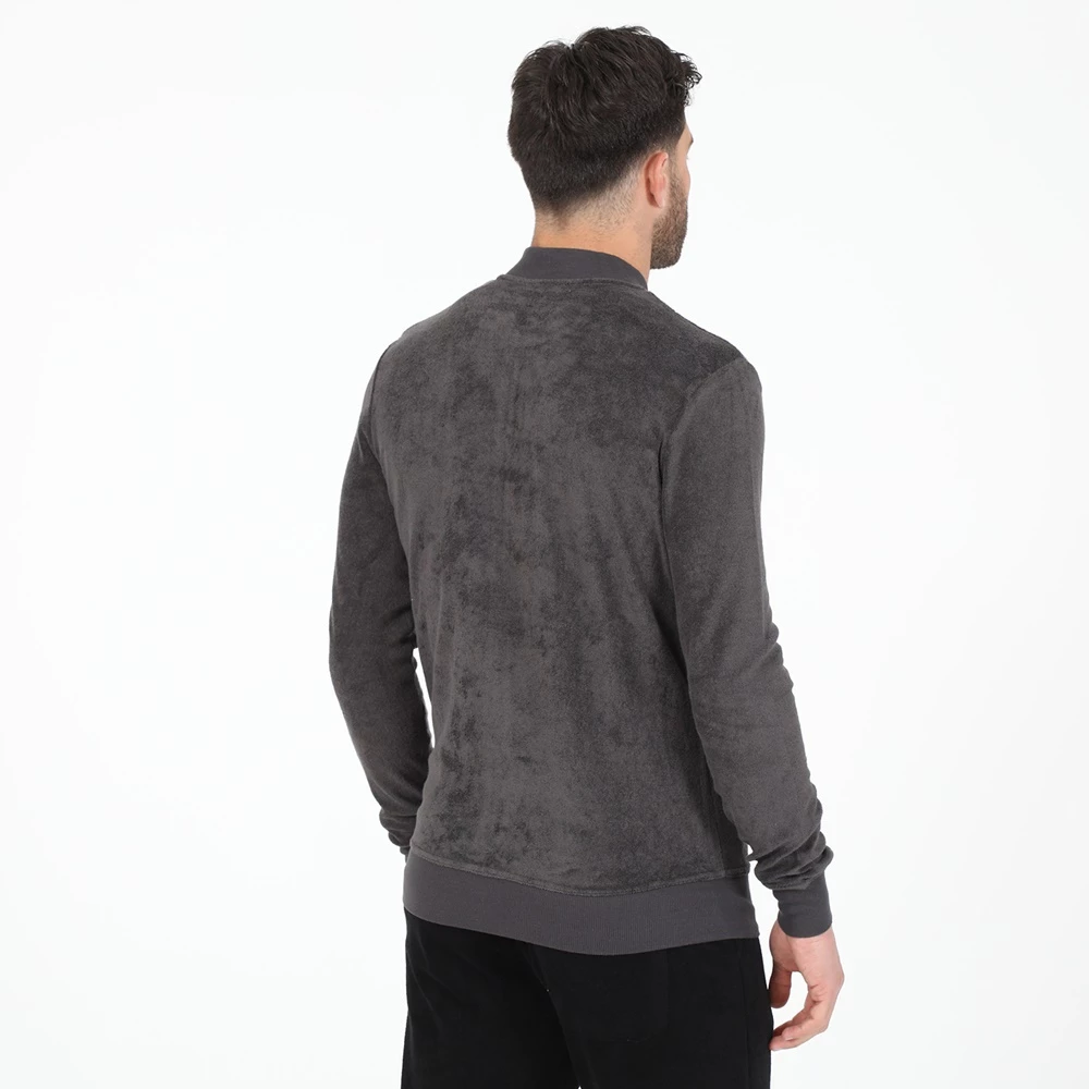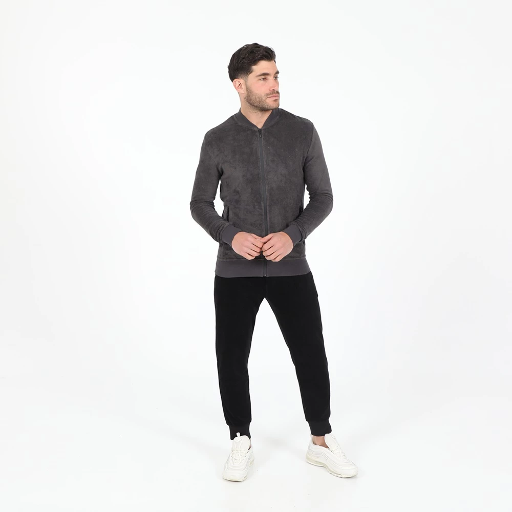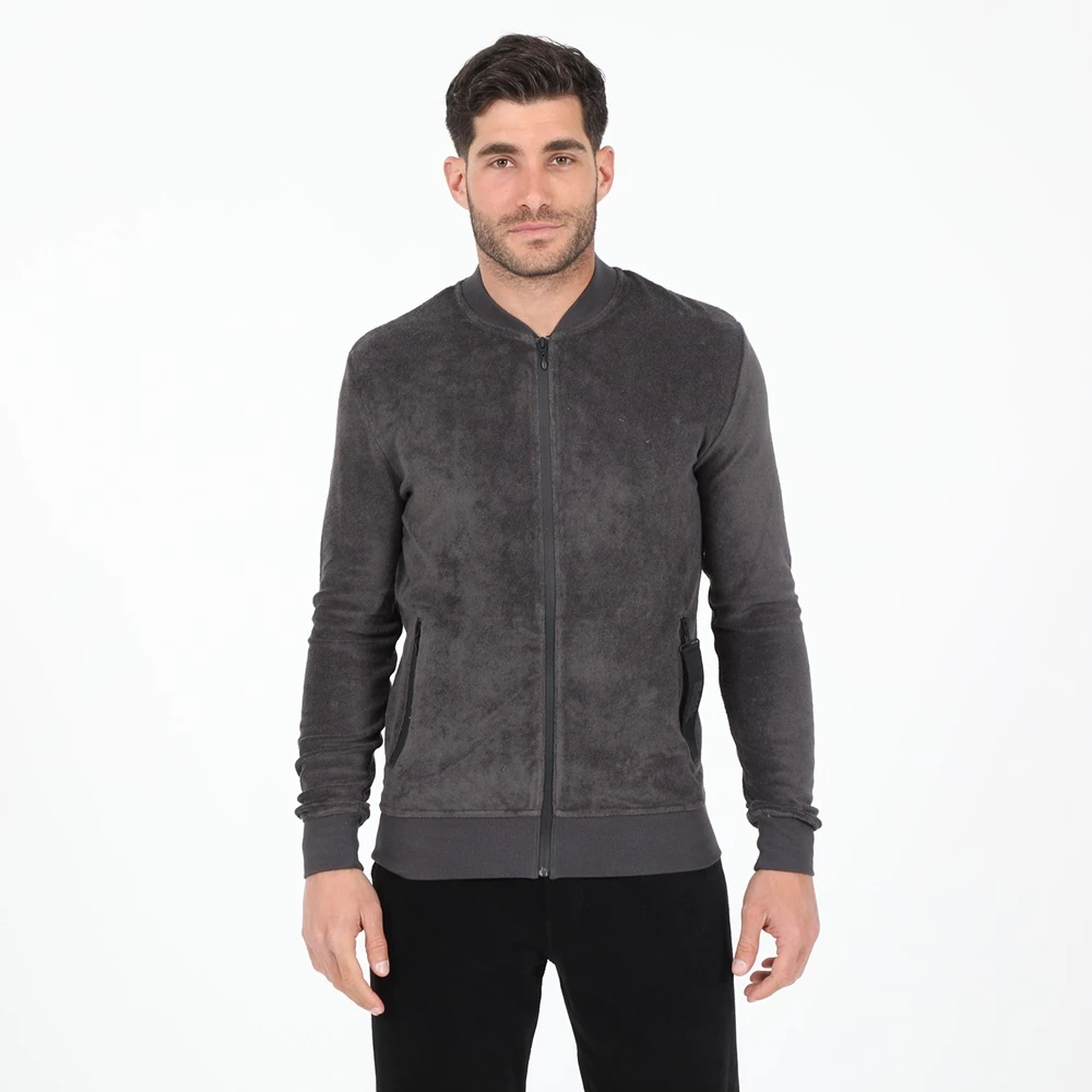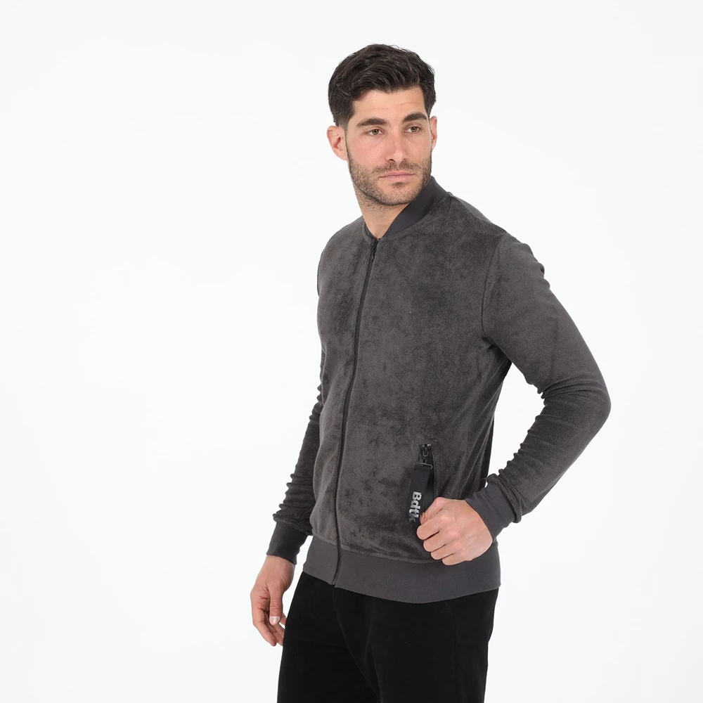 Ανδρική αθλητική ζακέτα BODYTALK σε γκρι απόχρωση. Σε ίσια γραμμή, από βαμβακερή πετσετέ ύφανση. Έχει στρογγυλή λαιμόκοψη, δύο τσέπες στα πλάγια και κλείνει με φερμουάρ μπροστά.