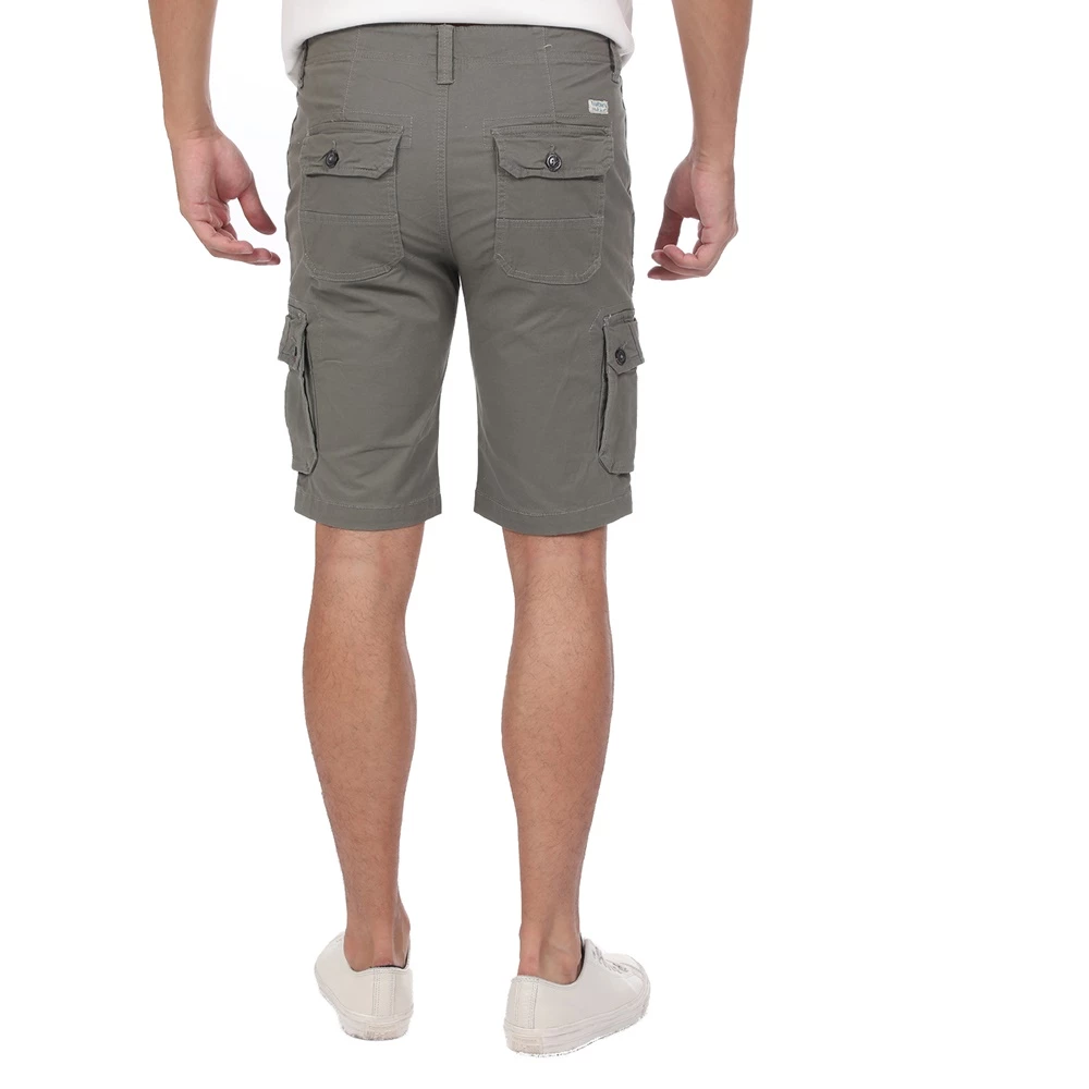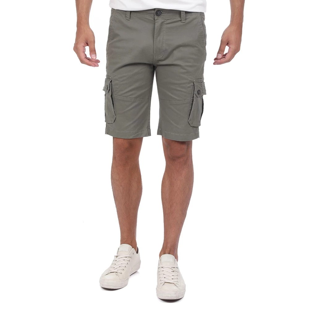 Ανδρική cargo βερμούδα BATTERY σε χακί απόχρωση. Σε ίσια γραμμή, από βαμβακερή σύνθεση. Διαθέτει δύο τσέπες στα πλάγια, δύο τσέπες με καπάκι πίσω και μεγάλες τσέπες στο ύψος των μηρών. Κλείνει με κουμπί και φερμουάρ μπροστά.