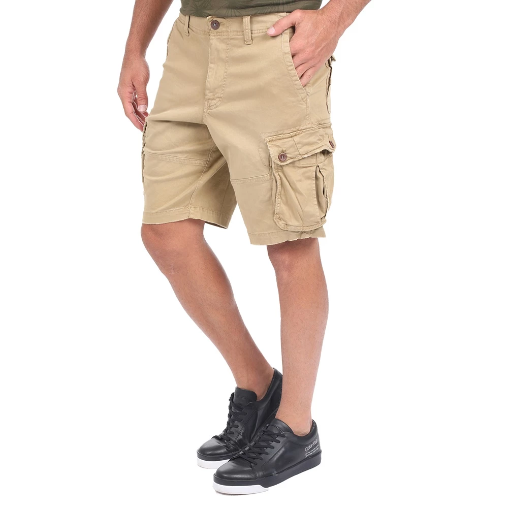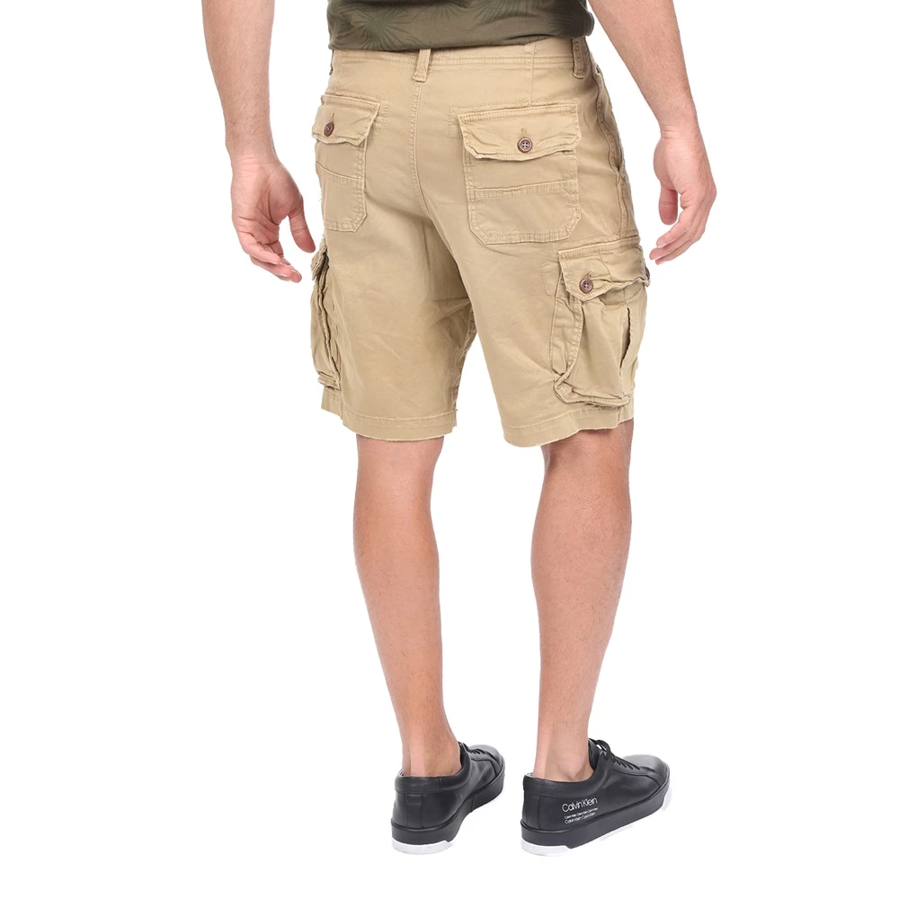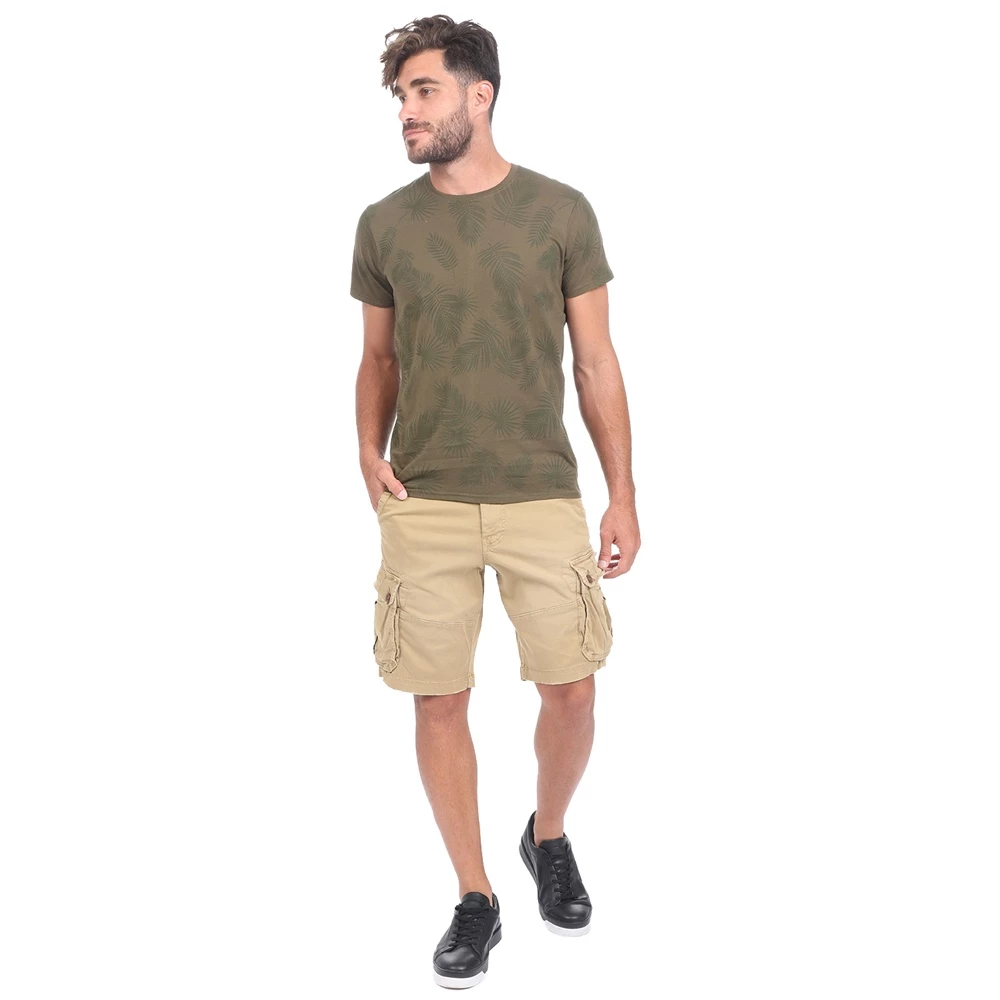 Ανδρική cargo βερμούδα BATTERY σε χακί απόχρωση. Σε ίσια γραμμή, από βαμβακερή σύνθεση. Διαθέτει δύο τσέπες στα πλάγια, δύο τσέπες πίσω και μεγάλες τσέπες με καπάκι. Κλείνει με κουμπί και φερμουάρ μπροστά.