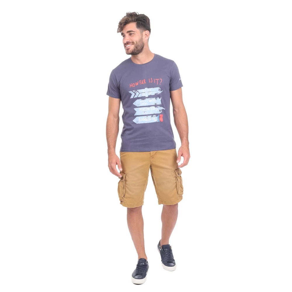 Ανδρική cargo βερμούδα BATTERY σε καφέ απόχρωση. Σε ίσια γραμμή, από βαμβακερή σύνθεση. Διαθέτει δύο τσέπες στα πλάγια, δύο τσέπες πίσω και μεγάλες τσέπες με καπάκι. Κλείνει με κουμπί και φερμουάρ μπροστά.