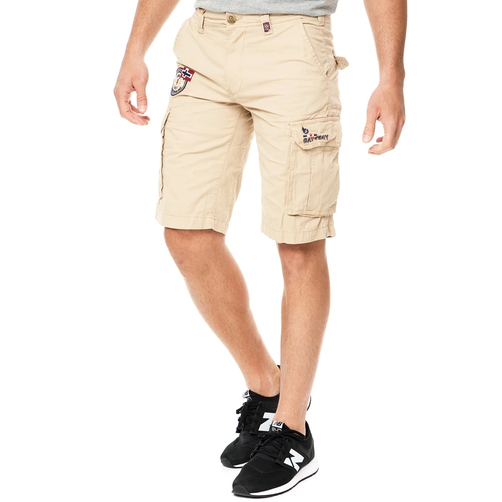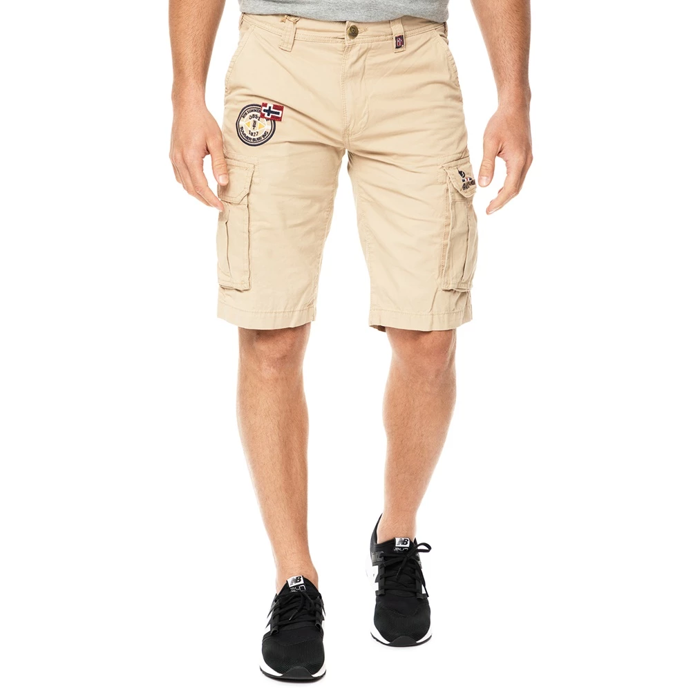 βερμούδα σε μπεζ απόχρωση με το λογότυπο του brand. Ιδανική επιλογή για καλοκαιρινές εμφανίσεις με στιλ!