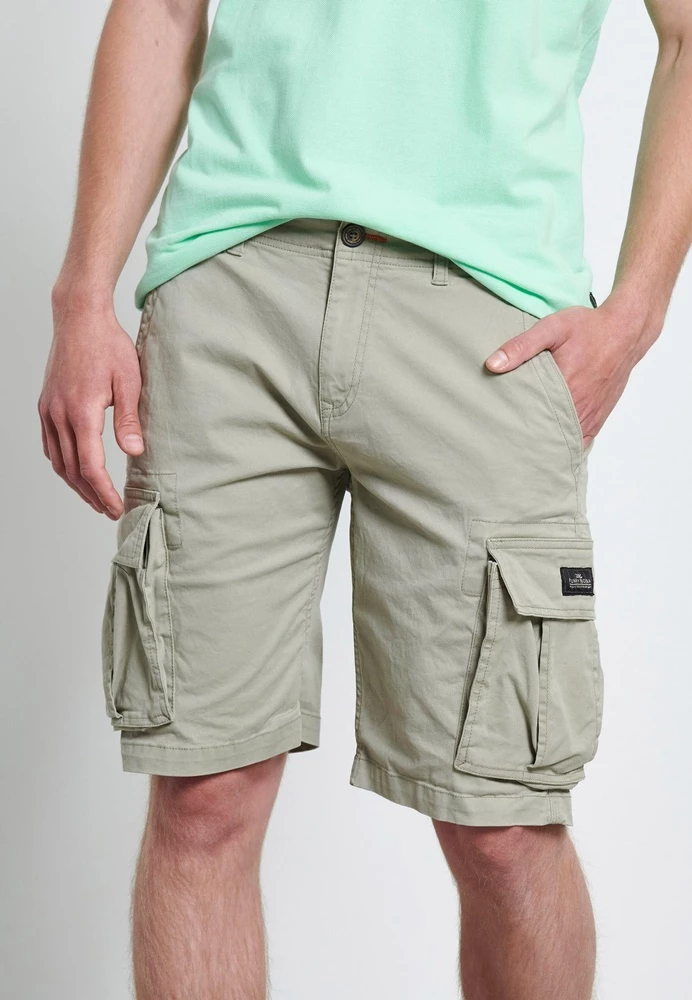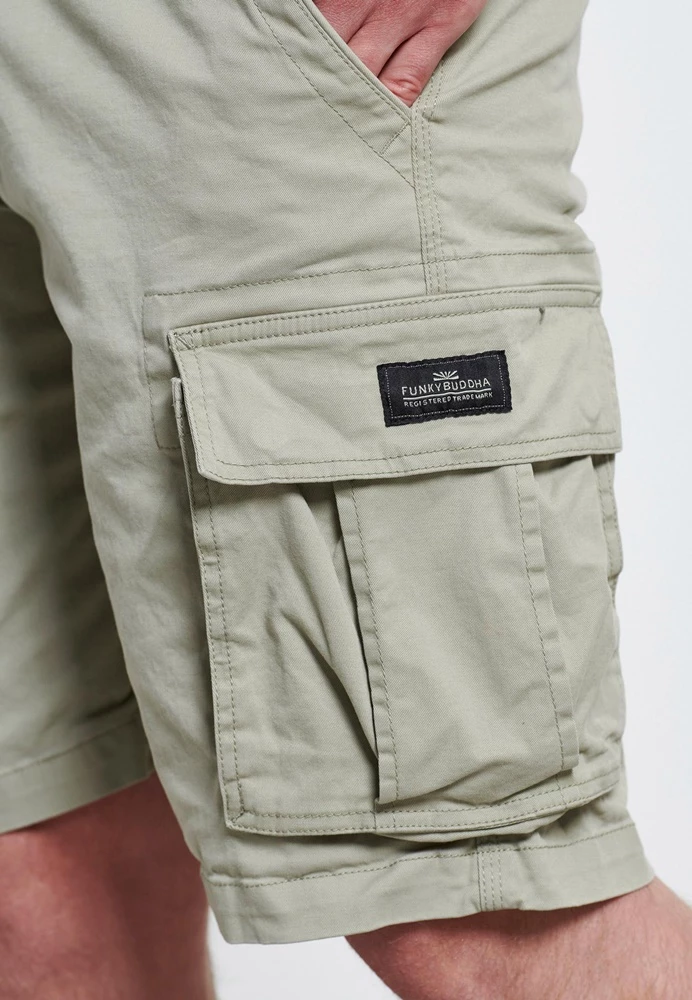 Ανδρική cargo βερμούδα FUNKY BUDDHA σε γκρι απόχρωση. Από σταθερό βαμβακερό ύφασμα, με κανονική εφαρμογή. Διαθέτει τσέπες μπροστά, πίσω και στα πλαϊνά. Κλείνει με κουμπί και φερμουάρ.