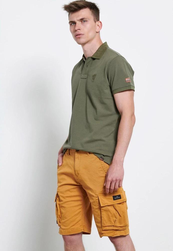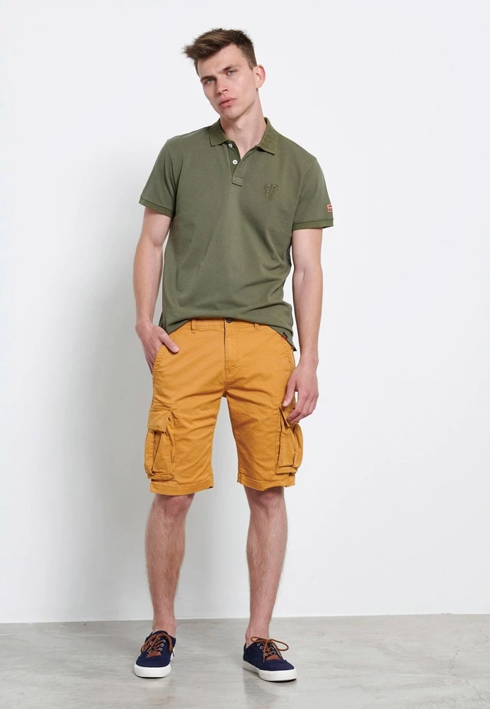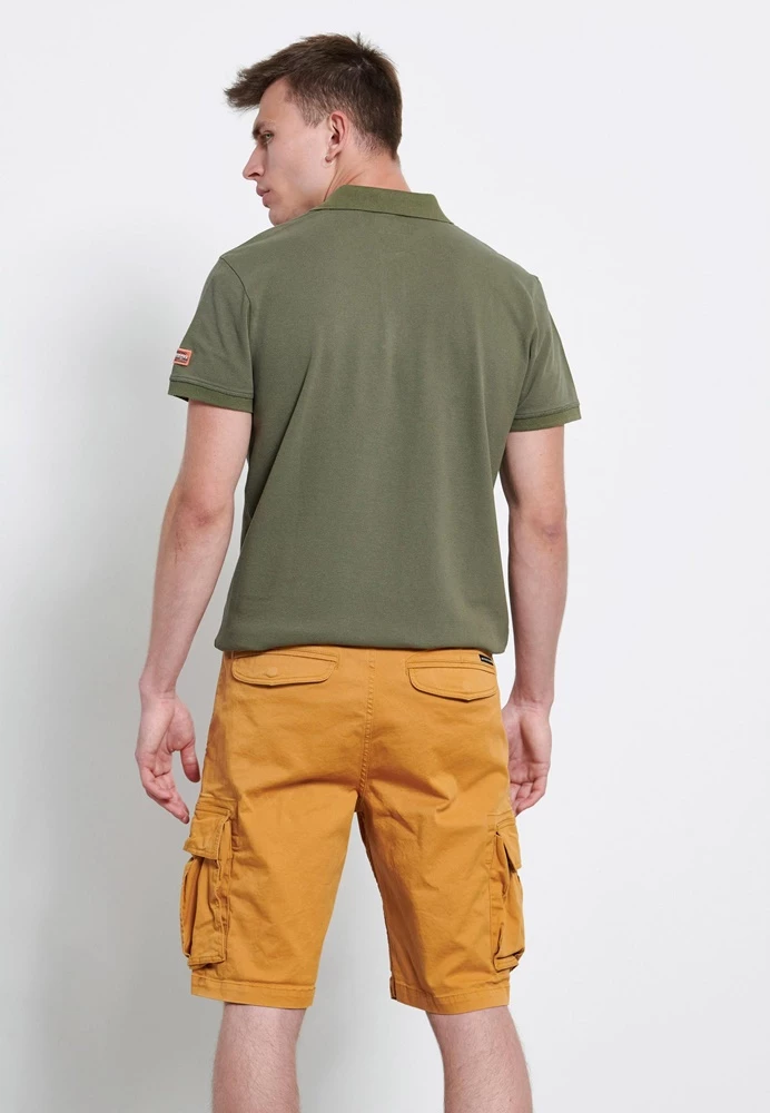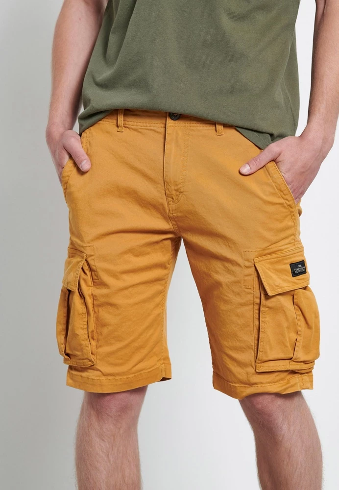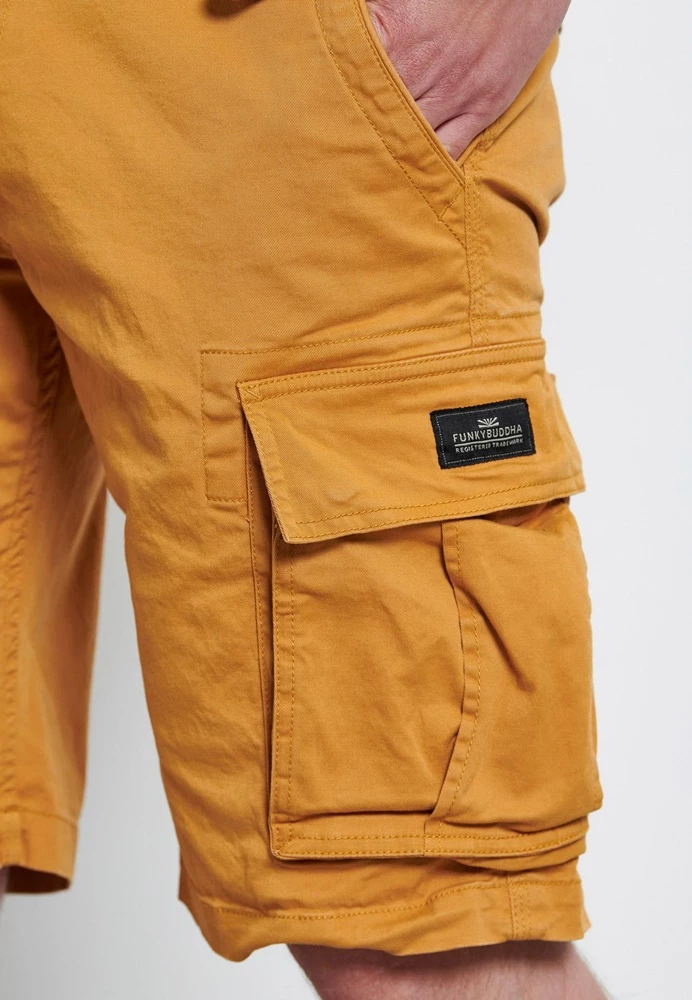 Ανδρική cargo βερμούδα FUNKY BUDDHA σε κίτρινη απόχρωση. Από σταθερό βαμβακερό ύφασμα, με κανονική εφαρμογή. Διαθέτει τσέπες μπροστά, πίσω και στα πλαϊνά. Κλείνει με κουμπί και φερμουάρ.