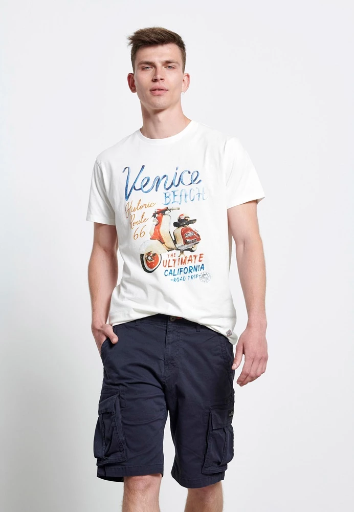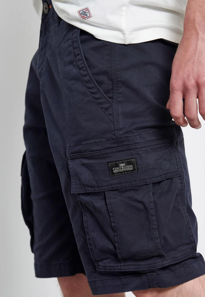 Ανδρική cargo βερμούδα FUNKY BUDDHA σε μπλε απόχρωση. Από σταθερό βαμβακερό ύφασμα, με κανονική εφαρμογή. Διαθέτει τσέπες μπροστά, πίσω και στα πλαϊνά. Κλείνει με κουμπί και φερμουάρ.