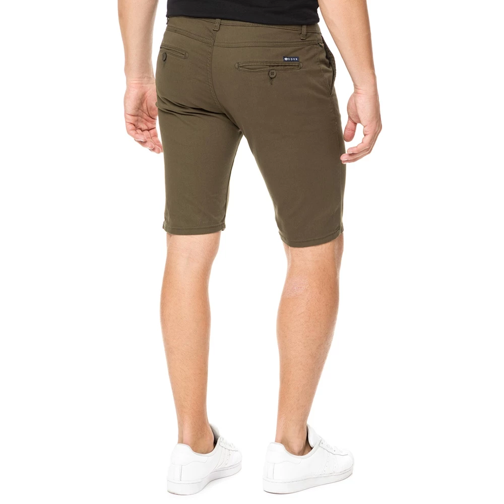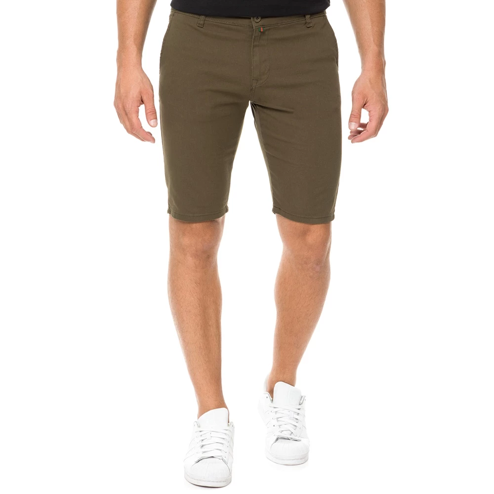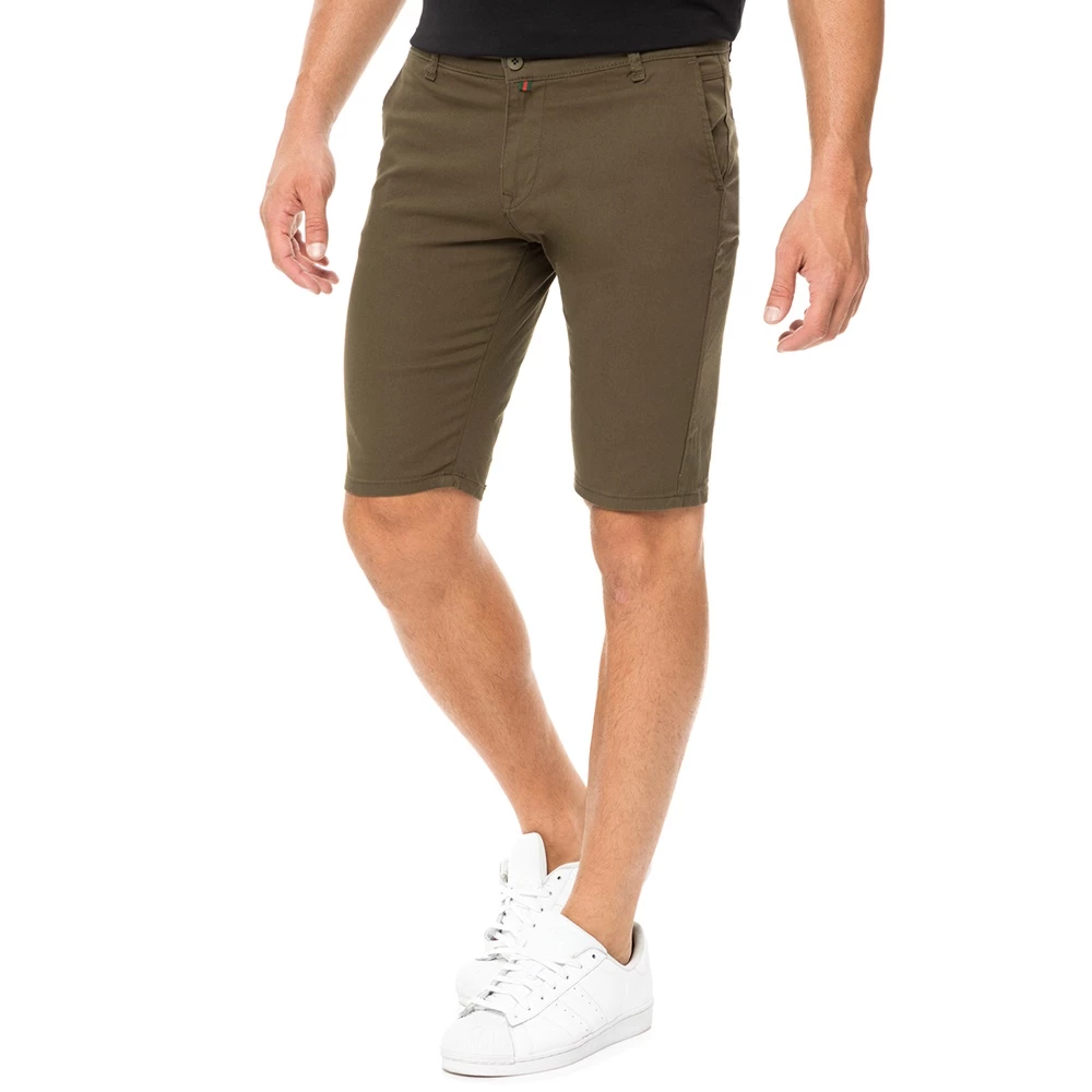 Ανδρική chino βερμούδα σε λαδί απόχρωση με στενή γραμμή και τις χαρακτηριστικές τσέπες. Συνδυάστε τη με λευκό λινό πουκάμισο για chic καλοκαιρινές εμφανίσεις.