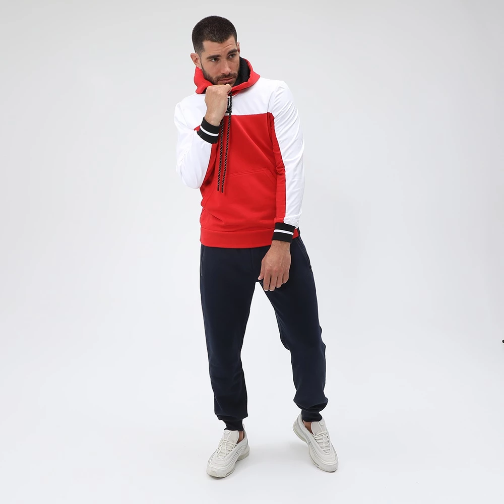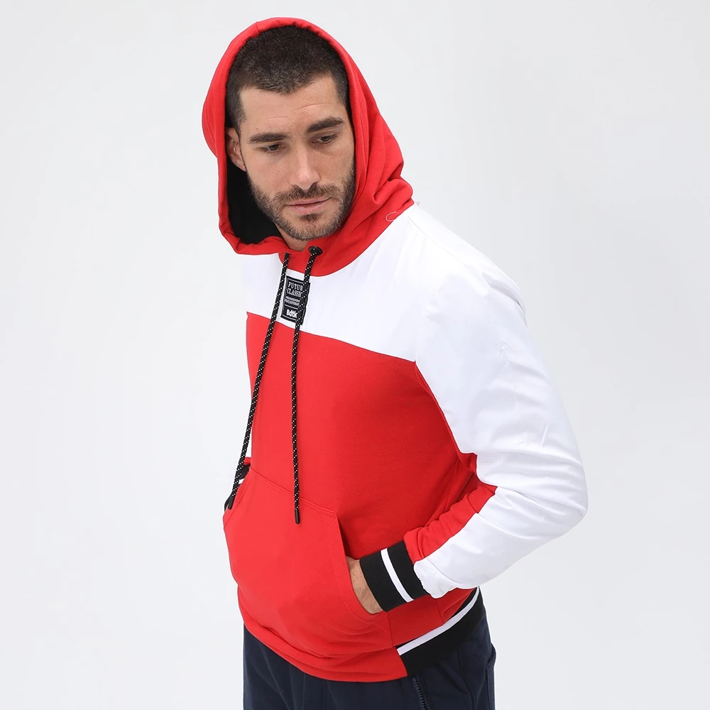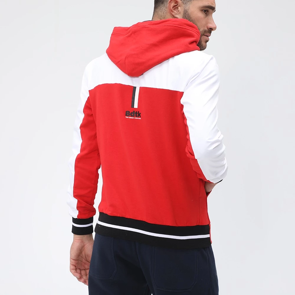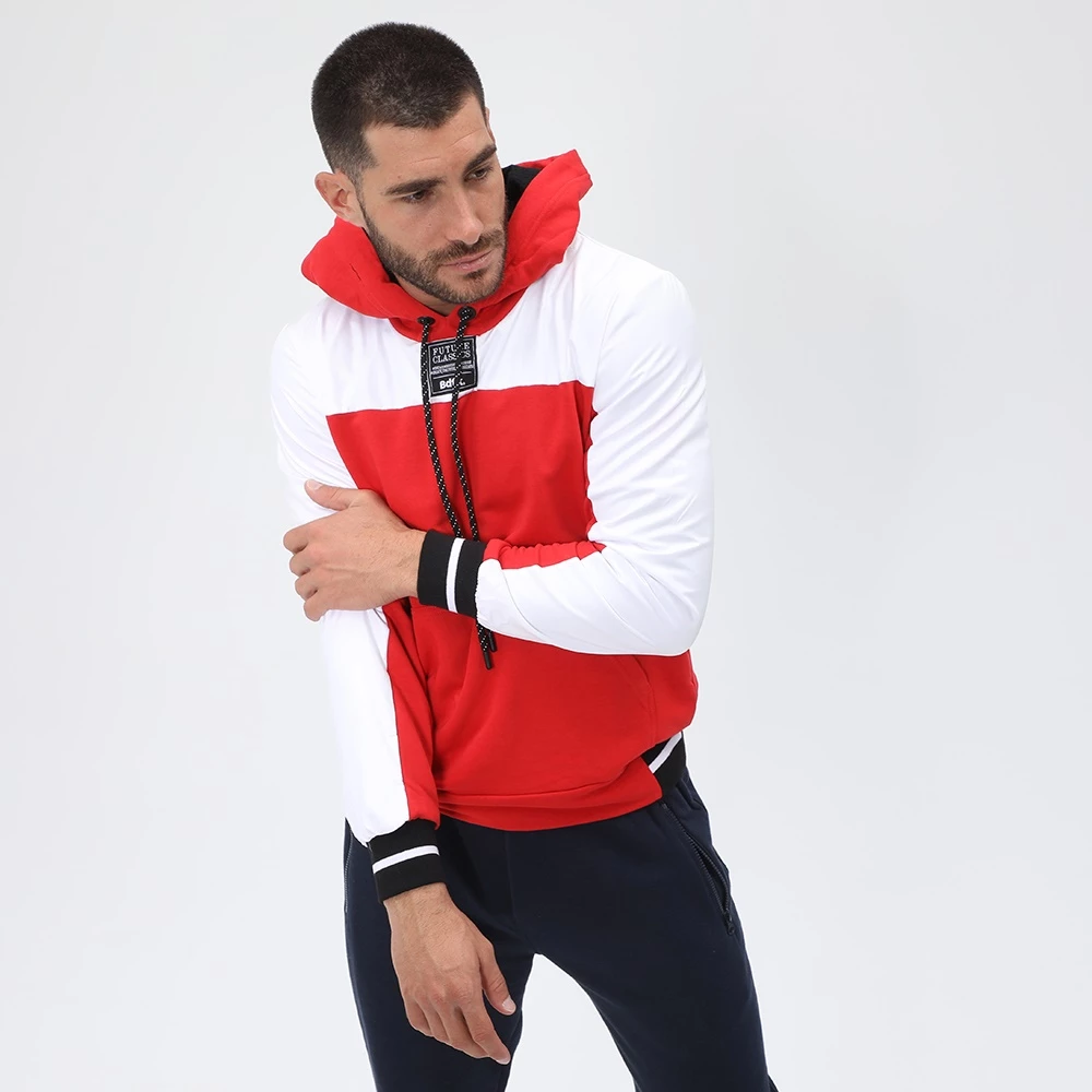 Ανδρική φούτερ μπλούζα BODYTALK σε κόκκινο και λευκό χρώμα. Σε ίσια γραμμή, με κουκούλα και τσέπη καγκουρό μπροστά.