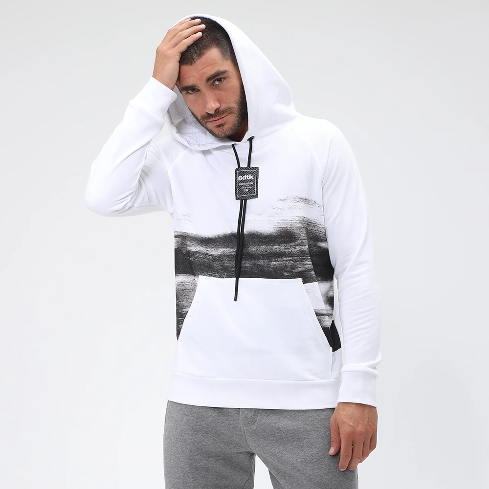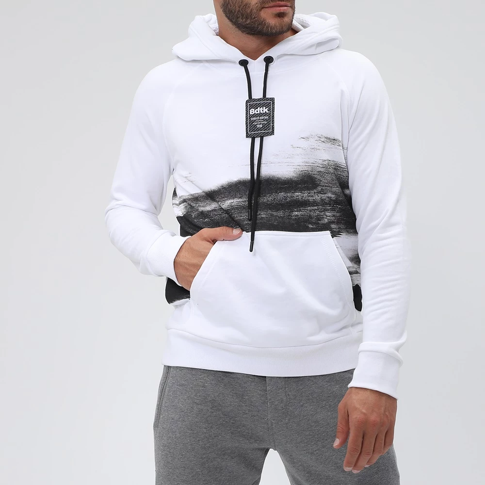 Ανδρική φούτερ μπλούζα BODYTALK σε λευκό χρώμα. Σε ίσια γραμμή, με κουκούλα και τσέπη καγκουρό μπροστά.