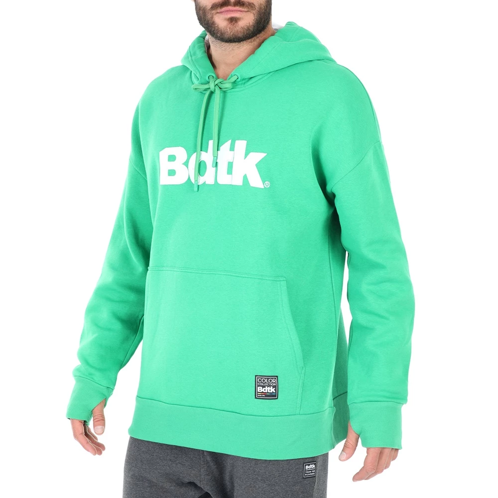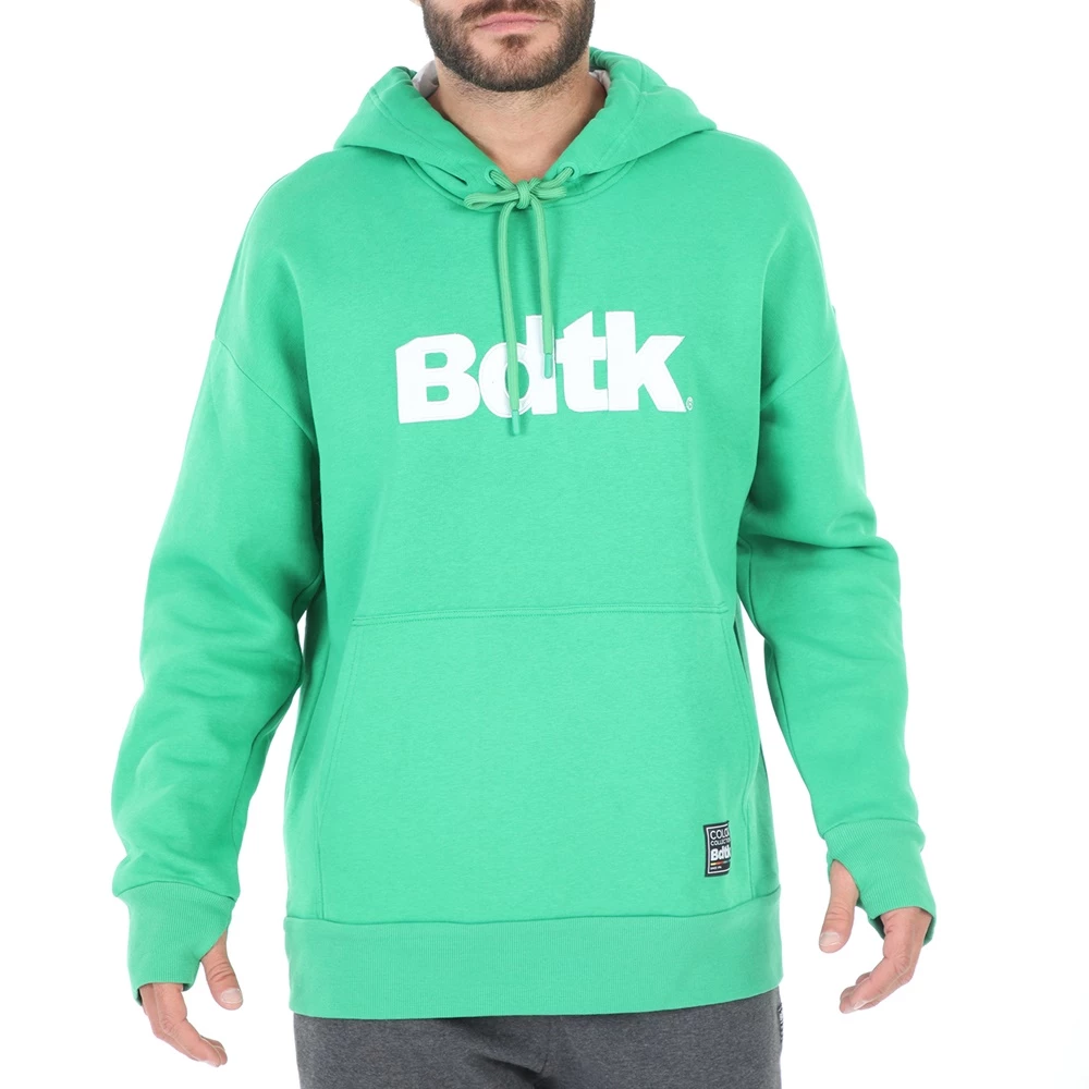 Ανδρική φούτερ μπλούζα BODYTALK σε πράσινη απόχρωση, με στάμπα μπροστά. Από βαμβακερή σύνθεση, σε φαρδιά γραμμή. Με στρογγυλή λαιμόκοψη και μακριά μανίκια με οπές για τους αντίχειρες στις μανσέτες. Διαθέτει κουκούλα με κορδόνι και τσέπη καγκουρό μπροστά.