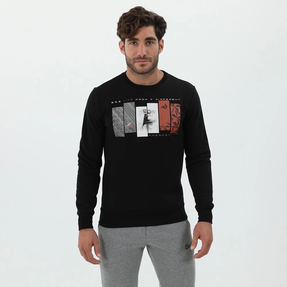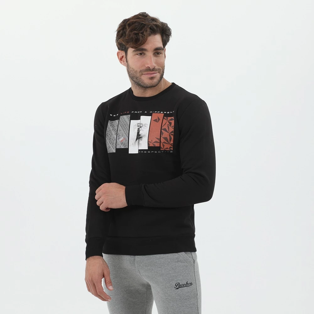 Ανδρική φούτερ μπλούζα CATAMARAN SAILWEAR σε μαύρο χρώμα, με στάμπα μπροστά. Σε ίσια γραμμή, με μακριά μανίκια και στρογγυλή λαιμόκοψη.