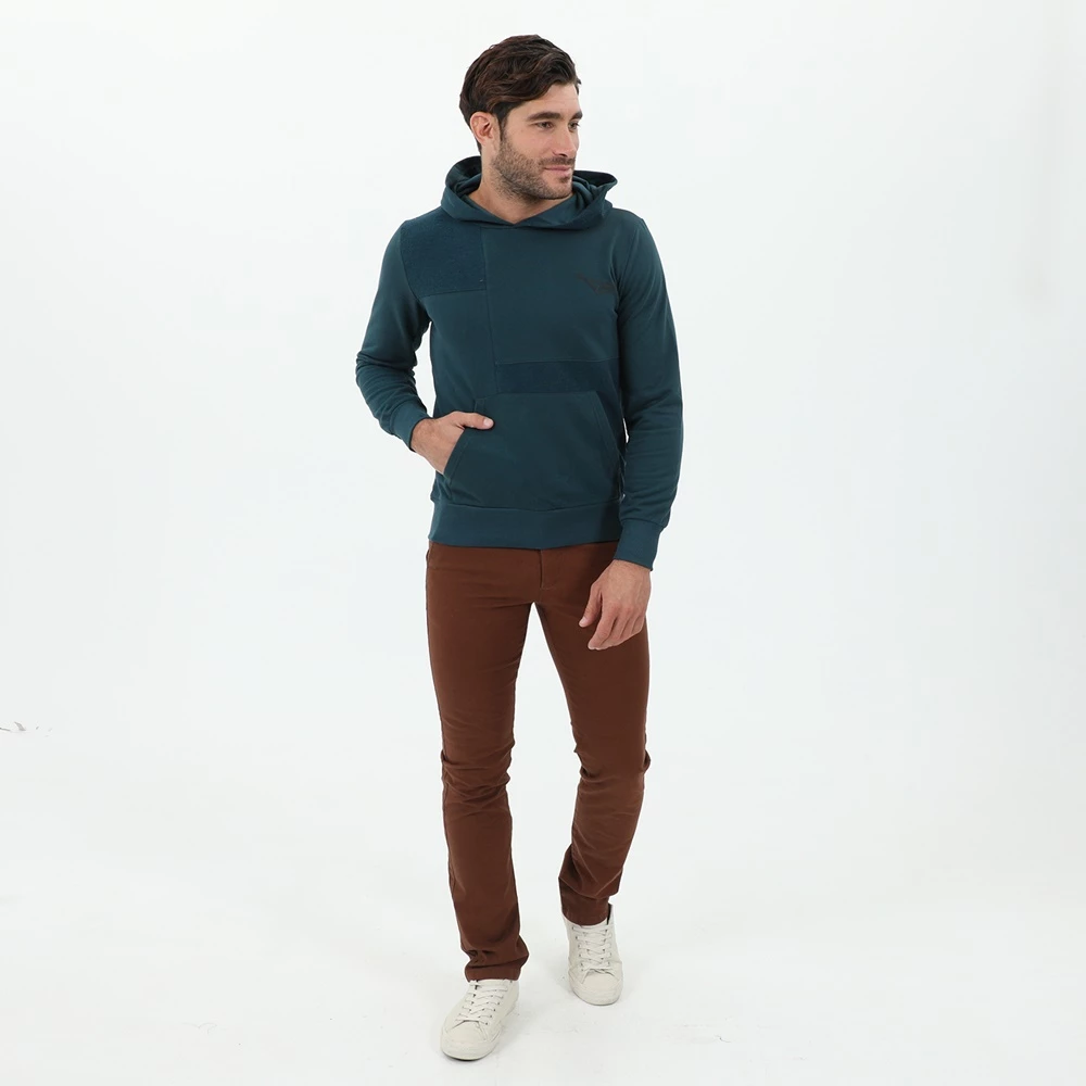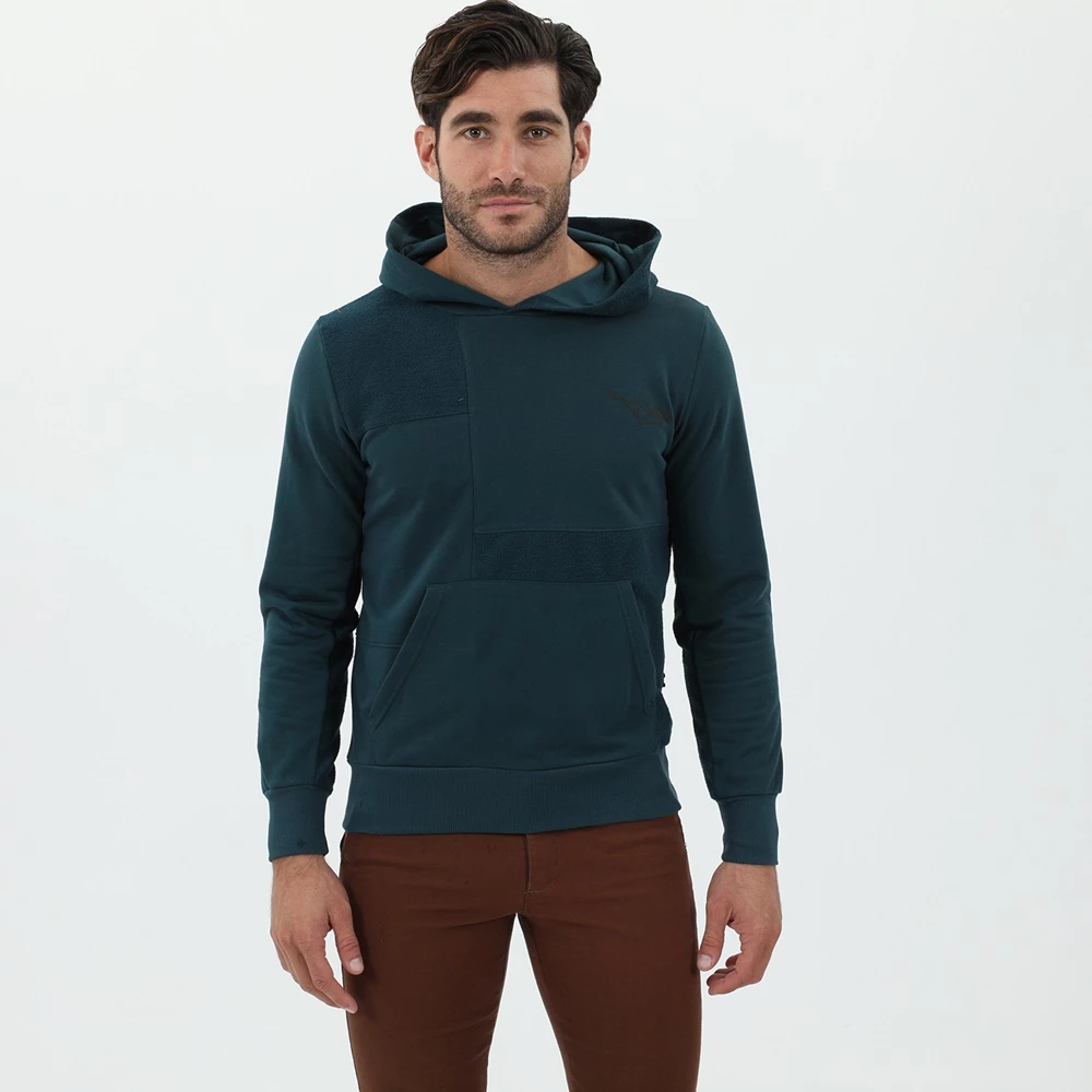 Ανδρική φούτερ μπλούζα CATAMARAN SAILWEAR σε πετρόλ απόχρωση με πικέ λεπτομέρειες. Σε ίσια γραμμή, με μακριά μανίκια και στρογγυλή λαιμόκοψη. Διαθέτει κουκούλα με κορδόνι και τσέπη καγκουρό.