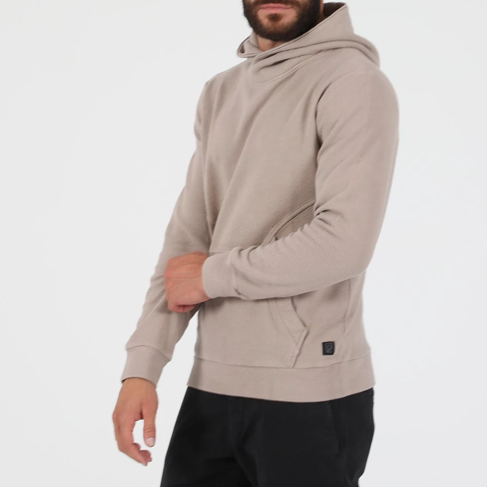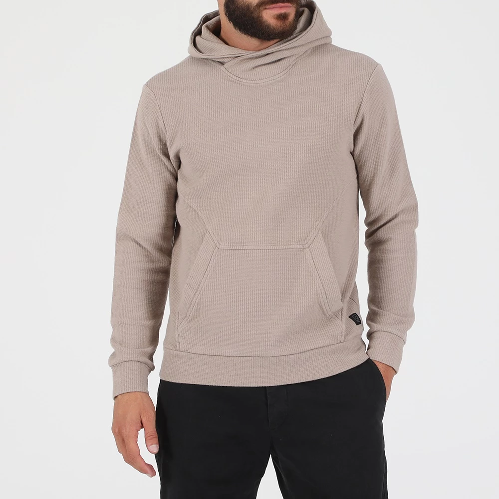 Ανδρική φούτερ μπλούζα DIRTY LAUNDRY σε μπεζ απόχρωση. Από βαμβακερή σύνθεση, με λάστιχο ριμπ στη βάση. Έχει μακριά μανίκια και όρθια λαιμόκοψη. Κουκούλα και τσέπη καγκουρό μπροστά.