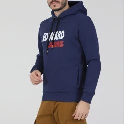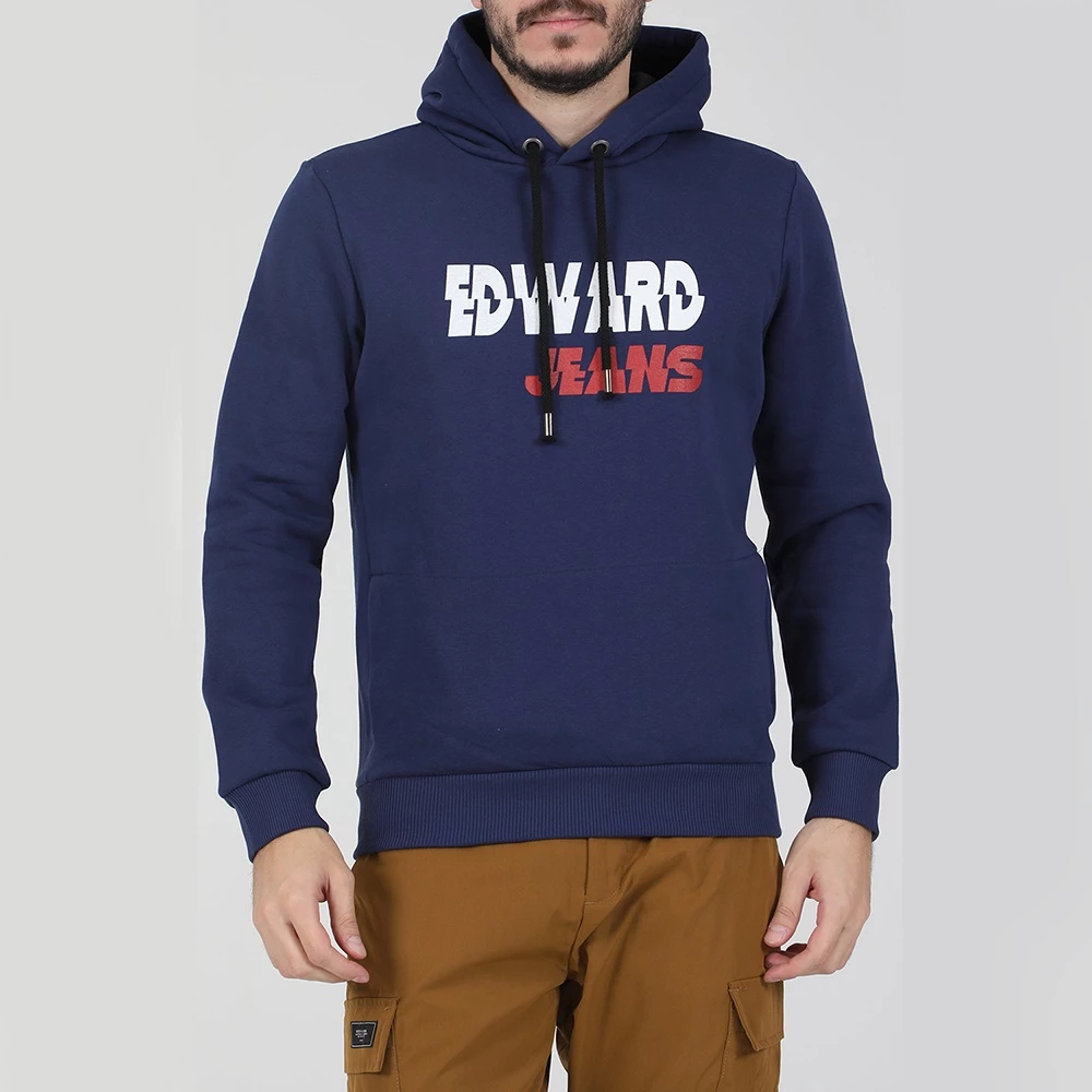 Ανδρική φούτερ μπλούζα EDWARD JEANS σε μπλε απόχρωση, με στάμπα μπροστά. Από βαμβακερή σύνθεση, με μακριά μανίκια και στρογγυλή λαιμόκοψη. Διαθέτει κουκούλα με κορδόνι και λάστιχο στη βάση.