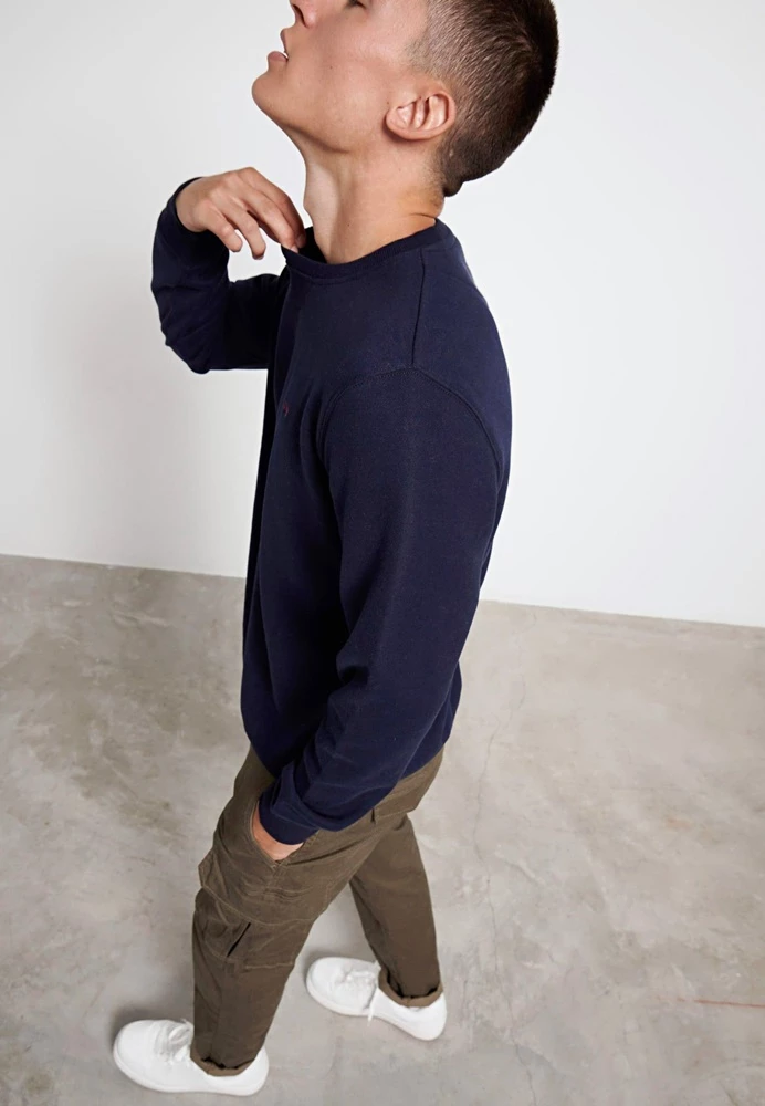 Ανδρική φούτερ μπλούζα FUNKY BUDDHA σε μπλε απόχρωση, με κεντημένο logo στο στήθος. Έχει στρογγυλή λαιμόκοψη, μακριά μανίκια και τελειώματα με πλέξη Rib.