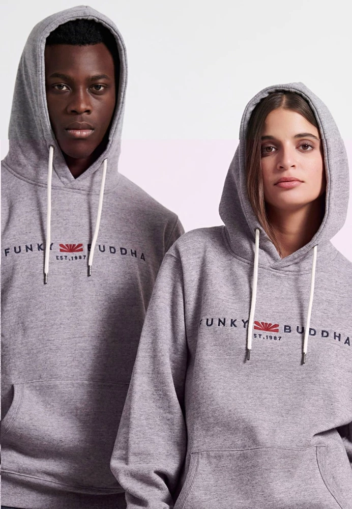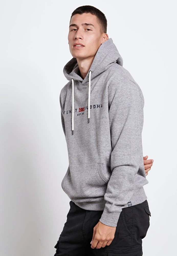 Ανδρική φούτερ μπλούζα FUNKY BUDDHA σε γκρι απόχρωση, με κεντημένο logo μπροστά. Κανονική εφαρμογή, από βαμβακερή σύνθεση. Διαθέτει κουκούλα με ενσωματωμένο κορδόνι και τσέπη καγκουρό. Τελειώματα με πλέξη rib.