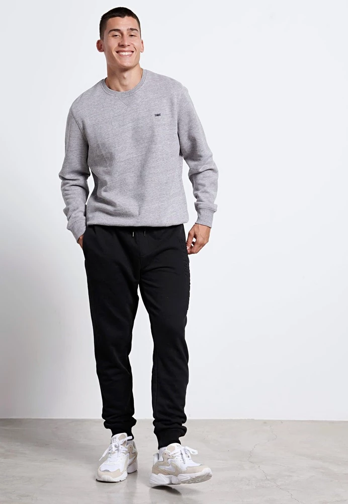 Ανδρική φούτερ μπλούζα FUNKY BUDDHA σε γκρι απόχρωση, με κεντημένο logo στο στήθος. Έχει στρογγυλή λαιμόκοψη, μακριά μανίκια και τελειώματα με πλέξη Rib.