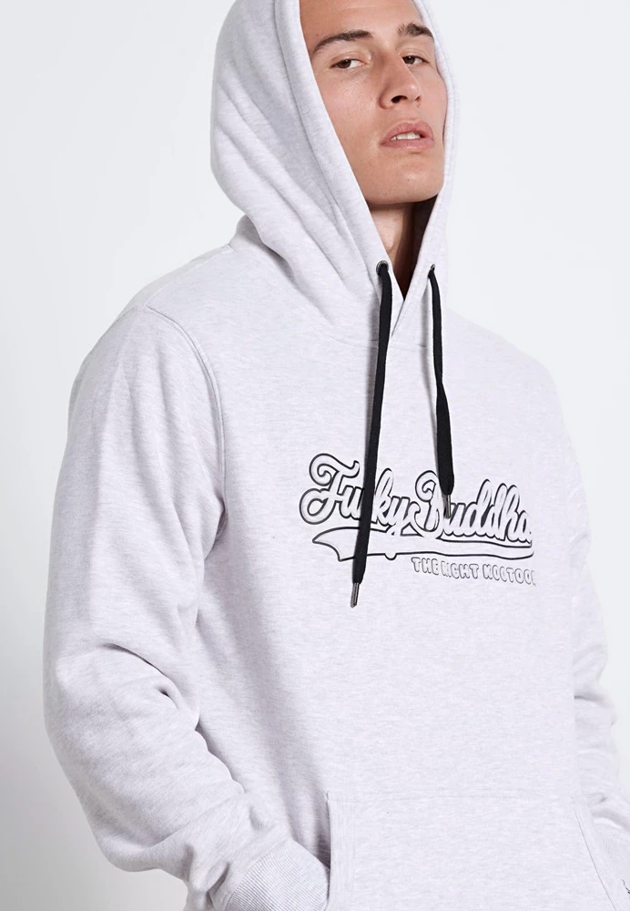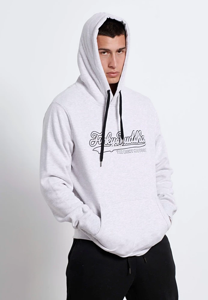 Ανδρική φούτερ μπλούζα FUNKY BUDDHA σε λευκό χρώμα με κουκούλα και ενσωματωμένο κορδόνι. Διαθέτει μπροστινή τσέπη,Funky Buddha κεντημένο λογότυπο και τελειώματα με πλέξη Rib.