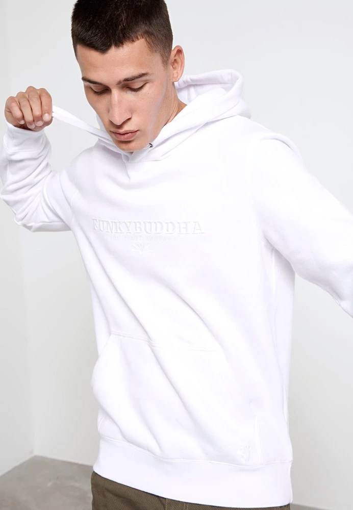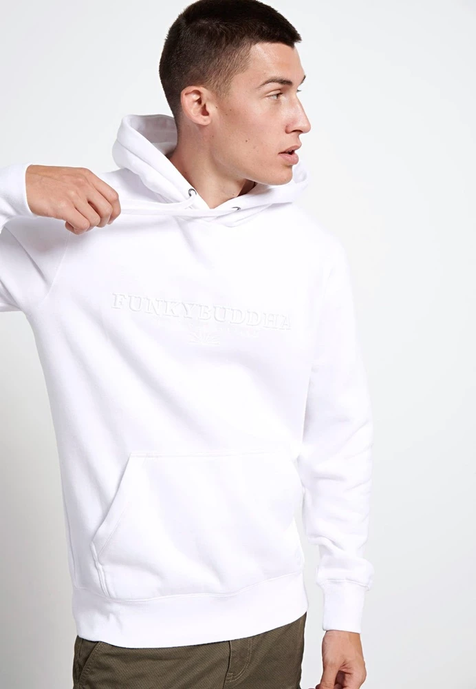 Aνδρική φούτερ μπλούζα FUNKY BUDDHA σε λευκό χρώμα. Διαθέτει κουκούλα με ενσωματωμένο κορδόνι,μπροστινή τσέπη, Funky Buddha κεντημένο λογότυπο και τελειώματα με πλέξη Rib
