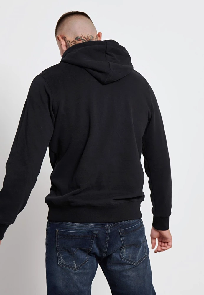 Ανδρική φούτερ μπλούζα FUNKY BUDDHA σε μαύρο χρώμα με κουκούλα και ενσωματωμένο κορδόνι. Διαθέτει μπροστινή τσέπη,Funky Buddha κεντημένο λογότυπο και τελειώματα με πλέξη Rib.