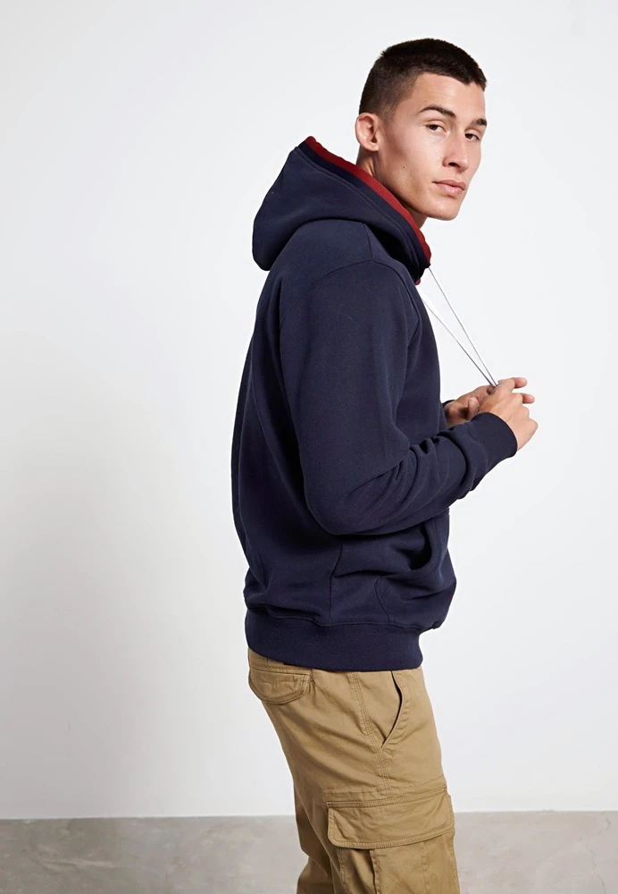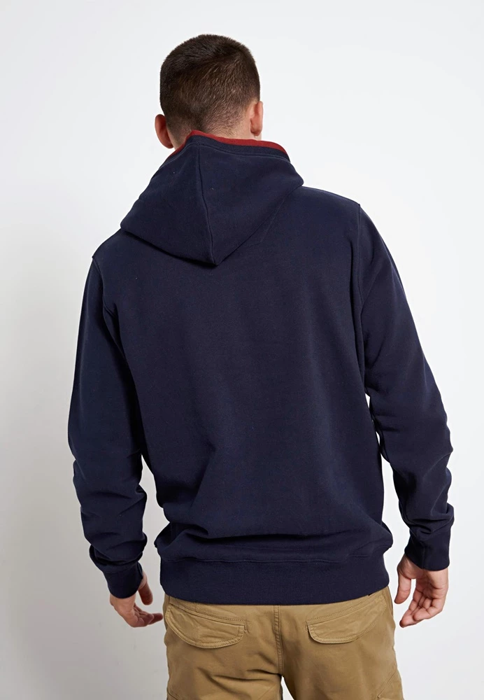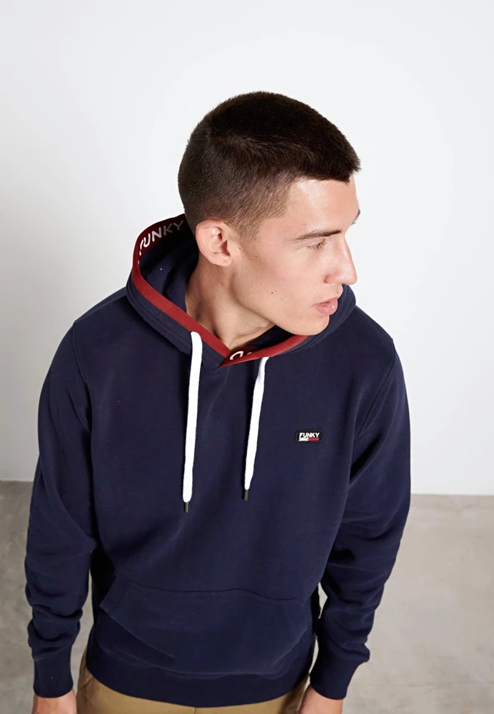 Ανδρική φούτερ μπλούζα FUNKY BUDDHA σε μπλε χρώμα. Από βαμβακερή σύνθεση, με μακριά μανίκια και μικρό όρθιο γιακά. Διαθέτει κουκούλα με ενσωματωμένο κορδόνι και δύο τσέπες στα πλάγια.
