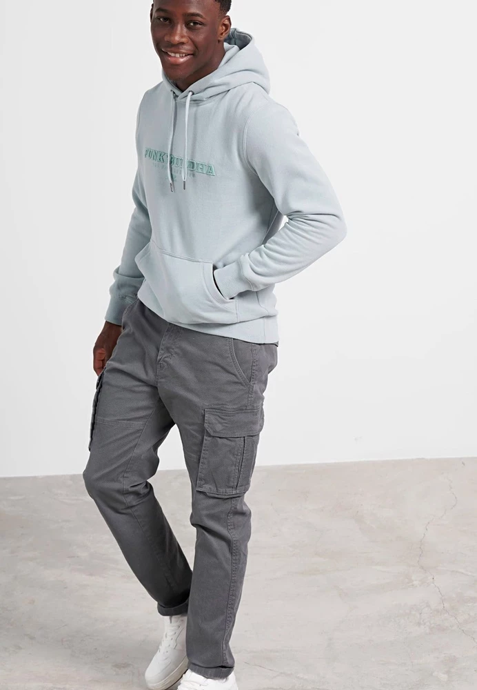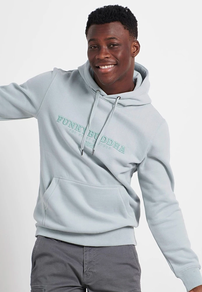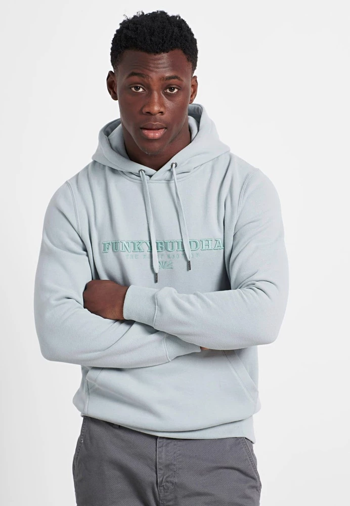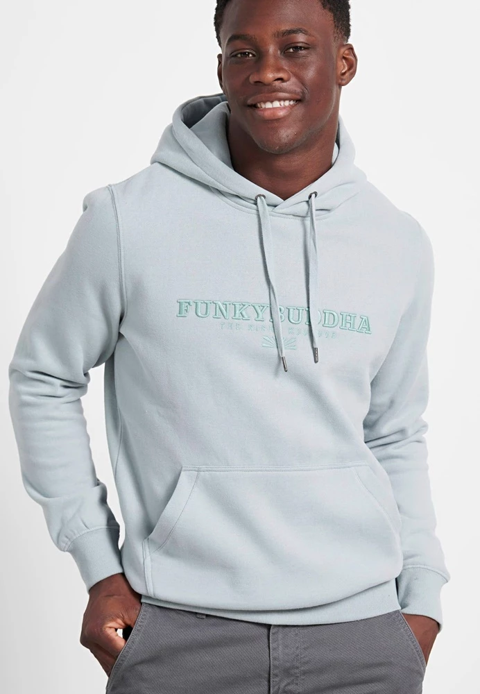 Ανδρική φούτερ μπλούζα FUNKY BUDDHA σε μπλε απόχρωση, με κεντημένο logo μπροστά. Κανονική εφαρμογή, από βαμβακερή σύνθεση. Διαθέτει κουκούλα με ενσωματωμένο κορδόνι και τσέπη καγκουρό. Τελειώματα με πλέξη rib.