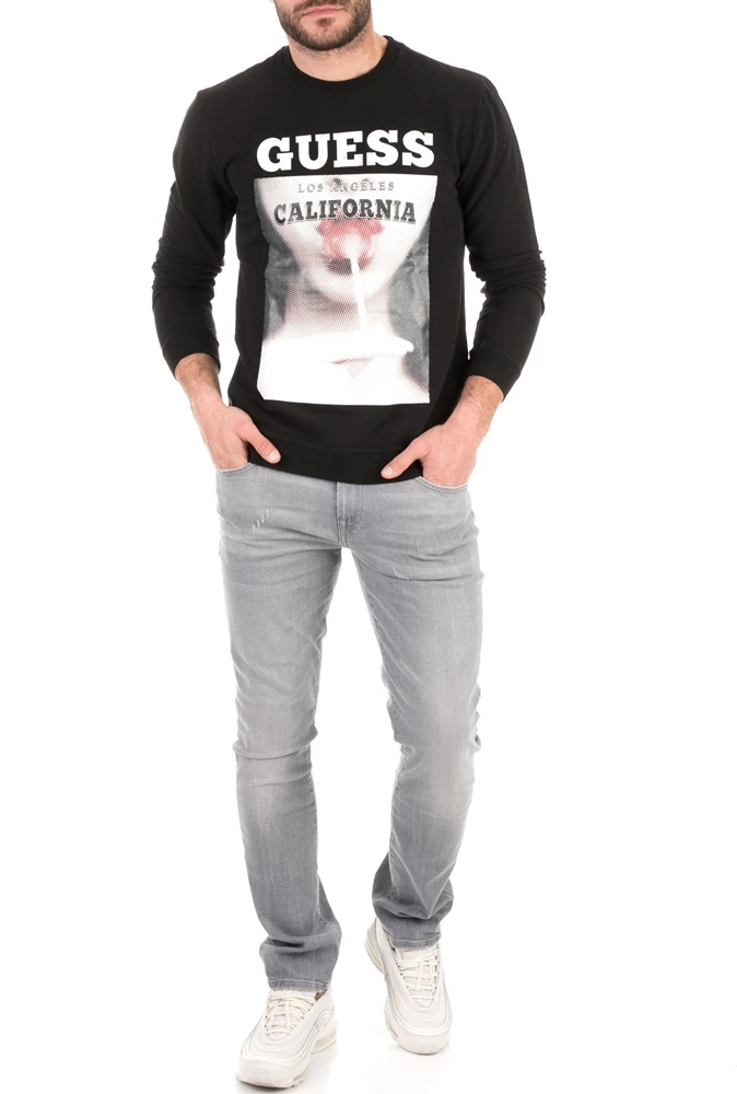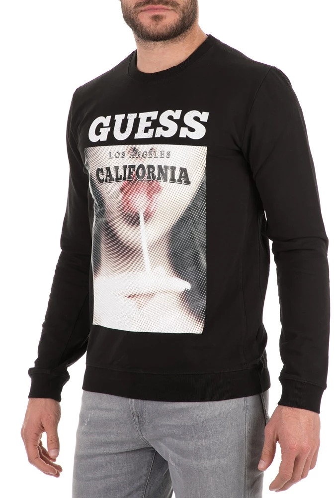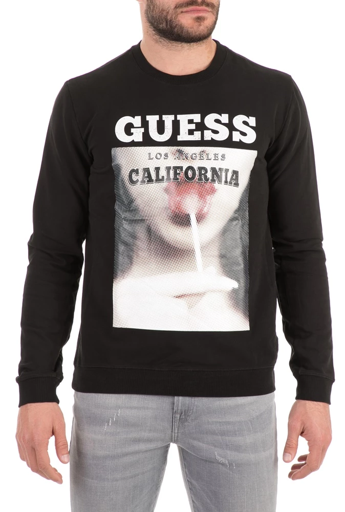 Ανδρική μπλούζα φούτερ GUESS σε μαύρο χρώμα με στάμπα μπροστά. Σε ίσια γραμμή, από βαμβακερή σύνθεση. Έχει μακριά μανίκια και στρογγυλή λαιμόκοψη. Ιδανική για τις καθημερινές σας εμφανίσεις.