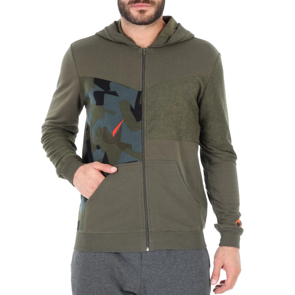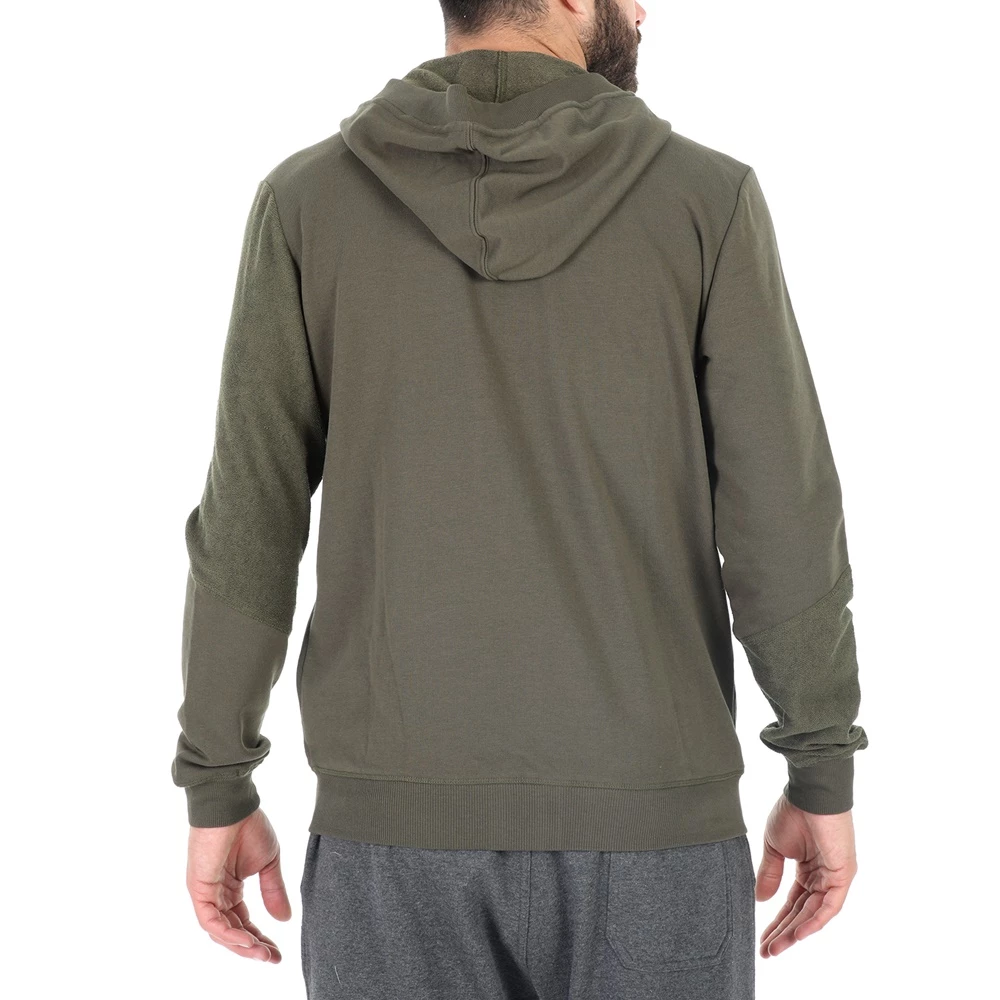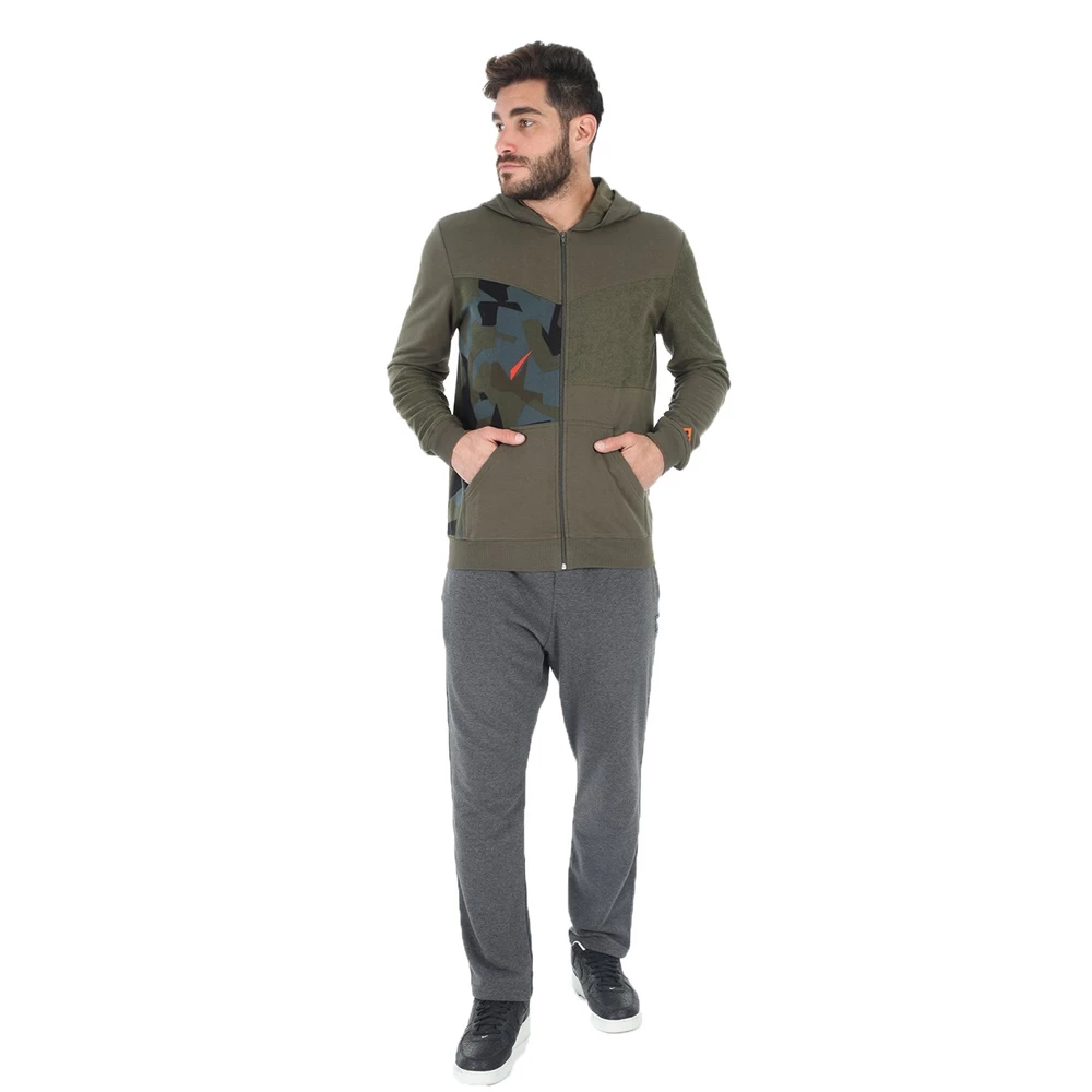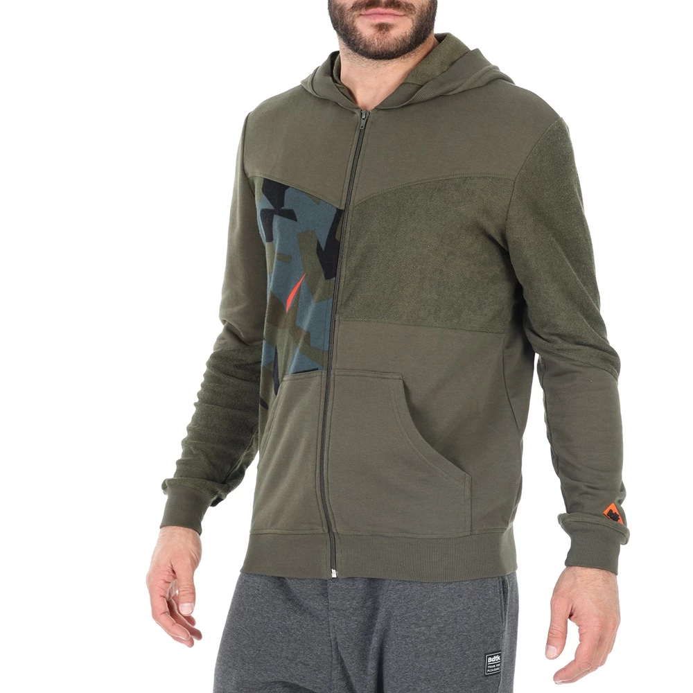 Ανδρική φούτερ ζακέτα BODYTALK σε χακί απόχρωση. Σε ίσια γραμμή, από βαμβακερή σύνθεση. Με μακριά μανίκια και στρογγυλή λαιμόκοψη. Διαθέτει κουκούλα, δύο τσέπες μπροστά και κλείνει με φερμουάρ. Λάστιχο ριμπ στις μανσέτες και την βάση.