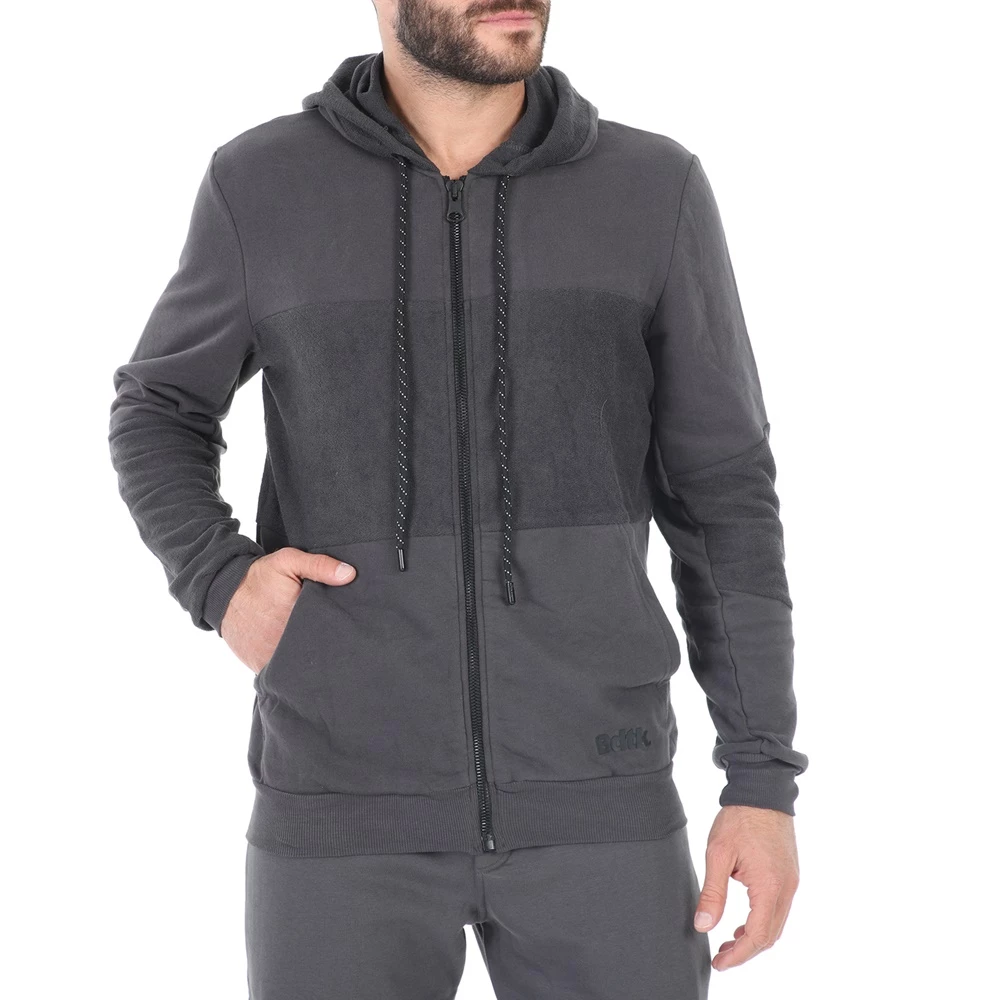 Ανδρική φούτερ ζακέτα BODYTALK σε γκρι απόχρωση. Σε ίσια γραμμή, από βαμβακερή σύνθεση. Με μακριά μανίκια και στρογγυλή λαιμόκοψη. Διαθέτει κουκούλα με κορδόνι, δύο τσέπες μπροστά και κλείνει με φερμουάρ. Λάστιχο ριμπ στις μανσέτες και την βάση.