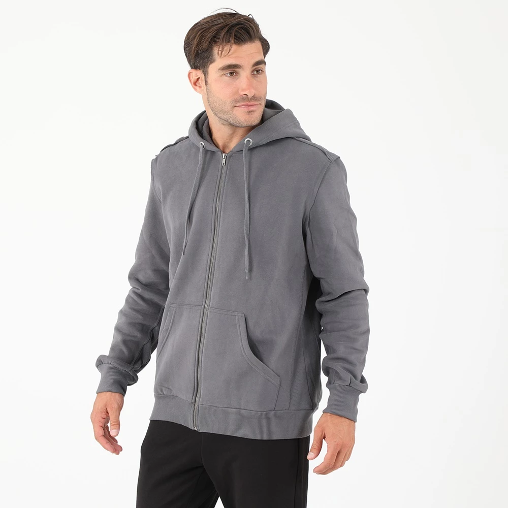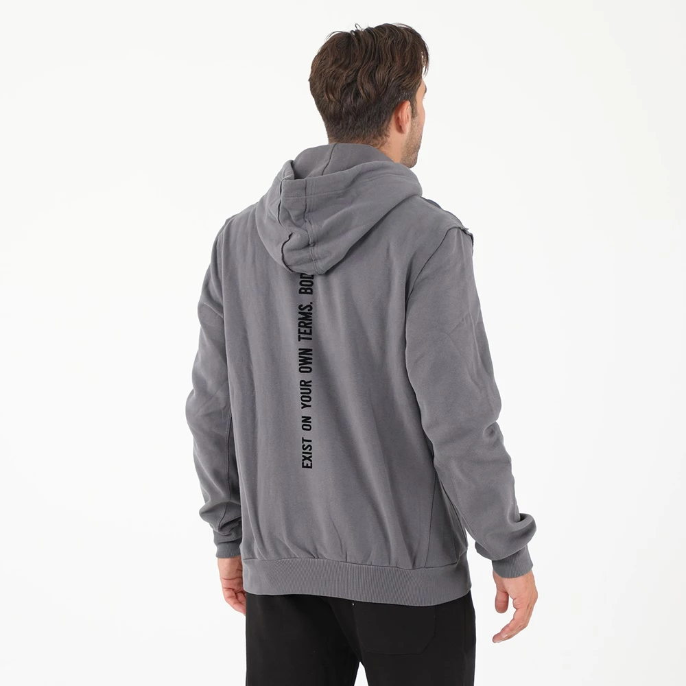 Ανδρική φούτερ ζακέτα BODYTALK σε γκρι απόχρωση. Από βαμβακερή σύνθεση, σε χαλαρή γραμμή. Με μακριά μανίκια και στρογγυλή λαιμόκοψη. Δαθέτει κουκούλα με κορδόνι και δύο τσέπες στα πλάγια. Κλείνει με φερμουάρ μπροστά.