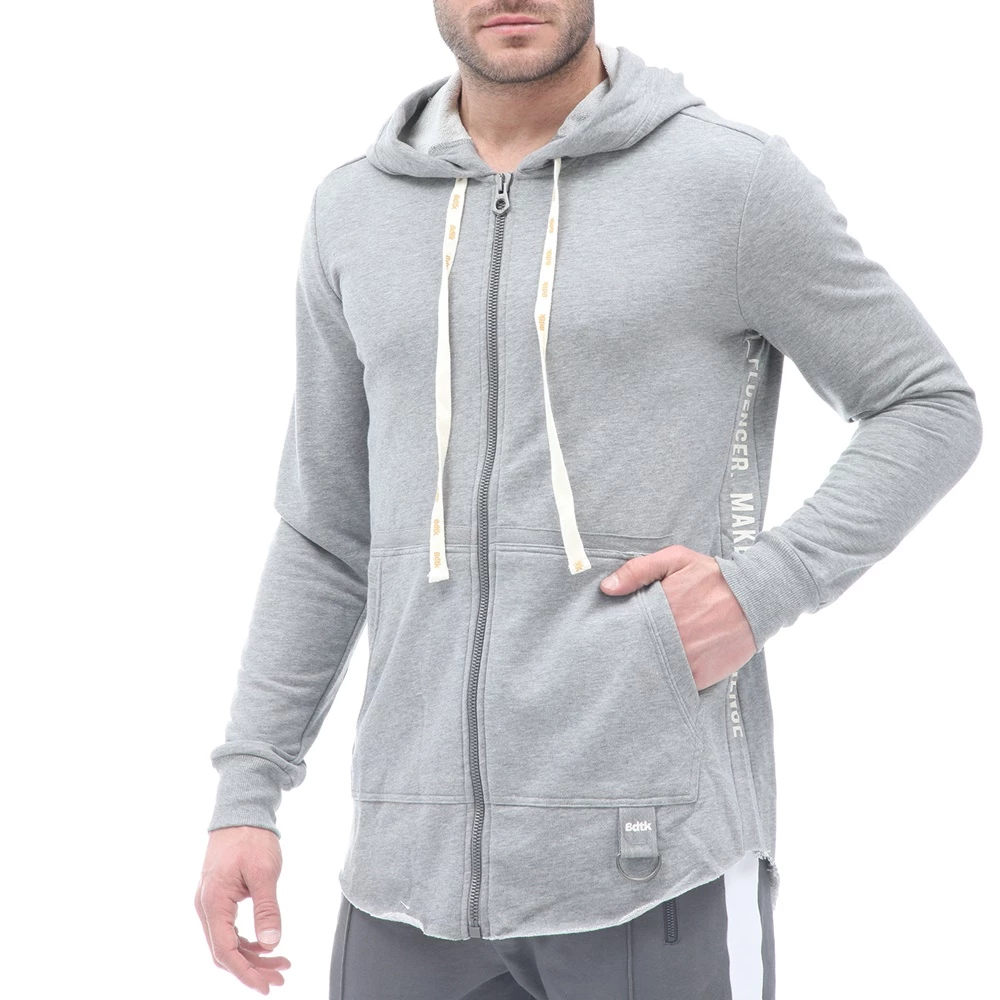 Ανδρική φούτερ ζακέτα BODYTALK σε γκρι απόχρωση. Από βαμβακερή σύνθεση, σε ίσια γραμμή. Έχει μακριά μανίκια και στρογγυλή λαιμόκοψη. Διαθέτει κουκούλα με κορδόνι και δύο τσέπες στα πλαγια. Κλείνει με φερμουάρ μπροστά.