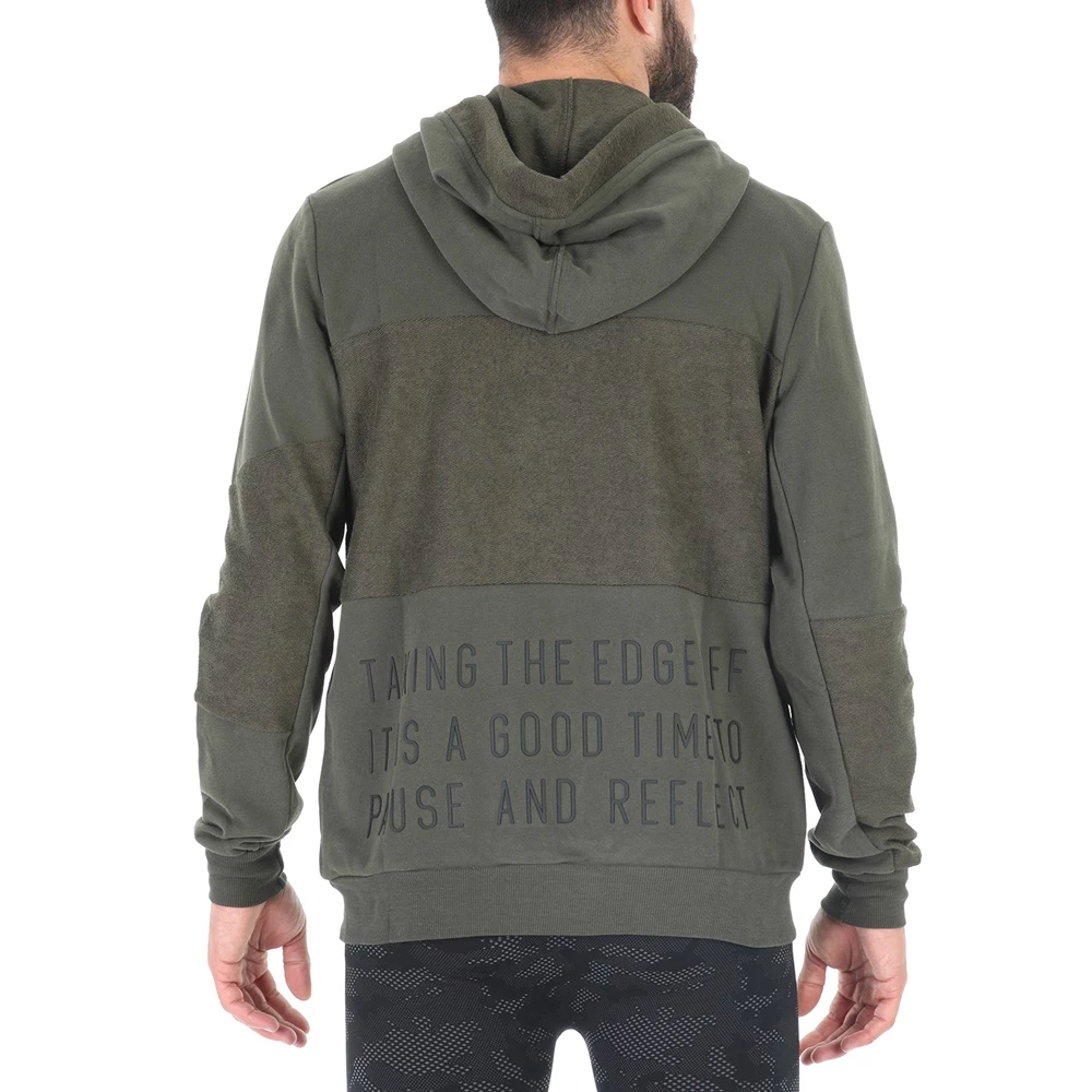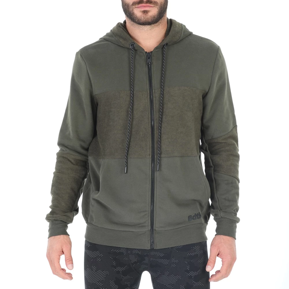 Ανδρική φούτερ ζακέτα BODYTALK σε πράσινη απόχρωση. Σε ίσια γραμμή, από βαμβακερή σύνθεση. Με μακριά μανίκια και στρογγυλή λαιμόκοψη. Διαθέτει κουκούλα με κορδόνι, δύο τσέπες μπροστά και κλείνει με φερμουάρ. Λάστιχο ριμπ στις μανσέτες και την βάση.
