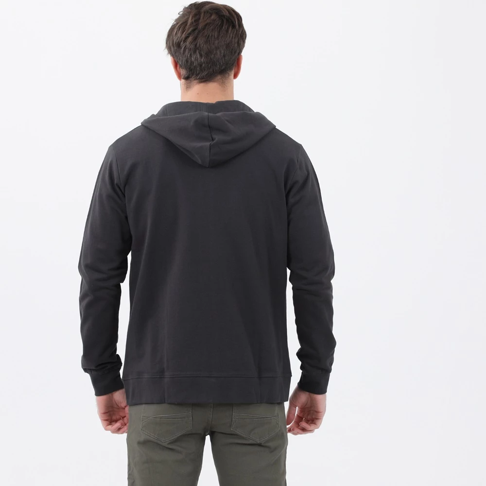 Ανδρική φούτερ ζακέτα DORS σε ανθρακί χρώμα, με στάμπα στο στήθος. Σε ίσια γραμμή, από βαμβακερή σύνθεση. Με μακριά μανίκια. Διαθέτει κουκούλα, δύο τσέπες στα πλάγια και λάστιχο ριμπ στις μανσέτες και στην βάση. Κλείνει με φερμουάρ μπροστά.