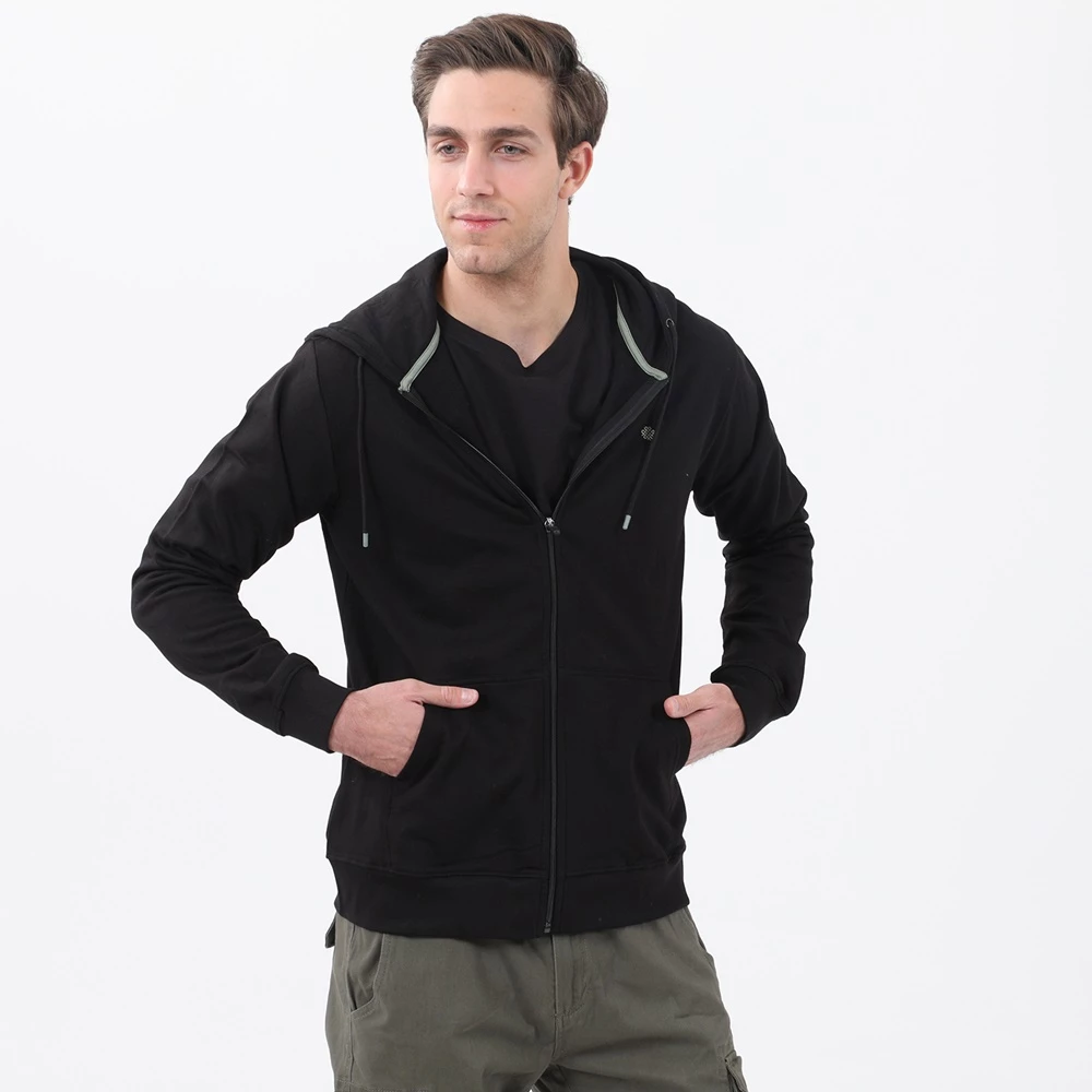 Ανδρική φούτερ ζακέτα DORS σε μαύρο χρώμα, με στάμπα στο στήθος. Σε ίσια γραμμή, από βαμβακερή σύνθεση. Με μακριά μανίκια. Διαθέτει κουκούλα, δύο τσέπες στα πλάγια και λάστιχο ριμπ στις μανσέτες και στην βάση. Κλείνει με φερμουάρ μπροστά.