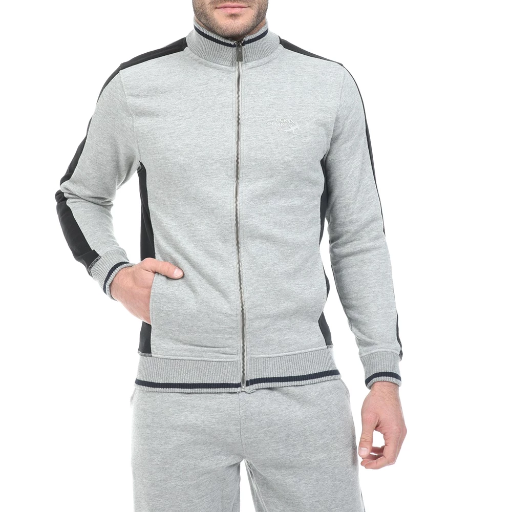 Ανδρική φούτερ ζακέτα OCEAN SHARK σε γκρι απόχρωση, με κεντημένο λογότυπο στο στήθος. Από βαμβακερή σύνθεση, σε ίσια γραμμή. Έχει μακριά μανίκια και όρθια λαιμόκοψη. Δύο τσέπες στα πλάγια και λάστιχο ριμπ στις μανσέτες και την βάση. Κλείνει με φερμουάρ μπροστά.