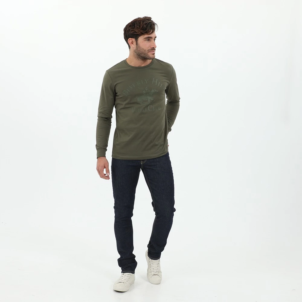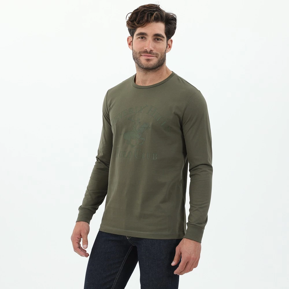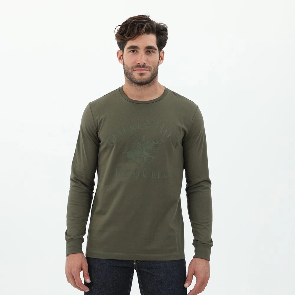 Ανδρική μπλούζα BEVERLY HILLS POLO CLUB σε λαδί απόχρωση, με τυπωμένο λογότυπο μπροστά. Από βαμβακερή σύνθεση, με μακριά μανίκια και στρογγυλή λαιμόκοψη. Λάστιχο ριμπ στις μανσέτες.