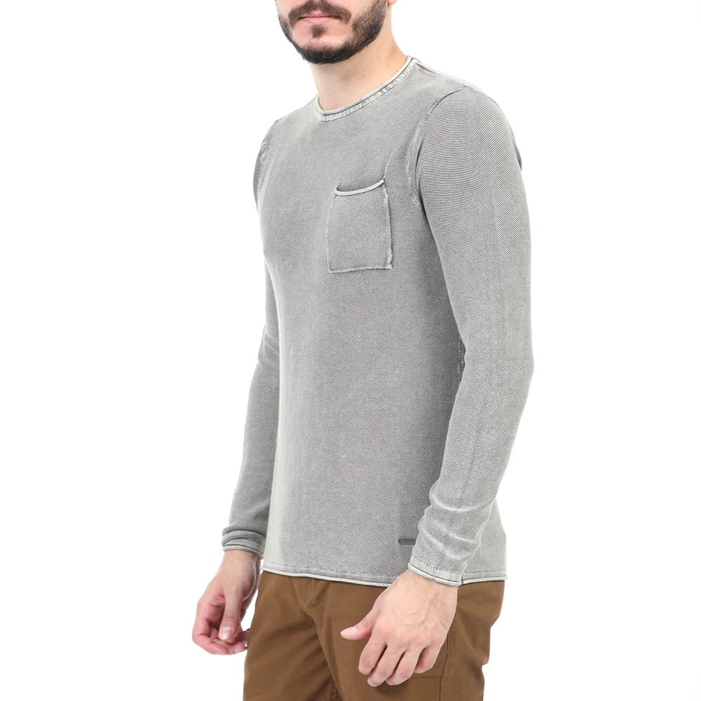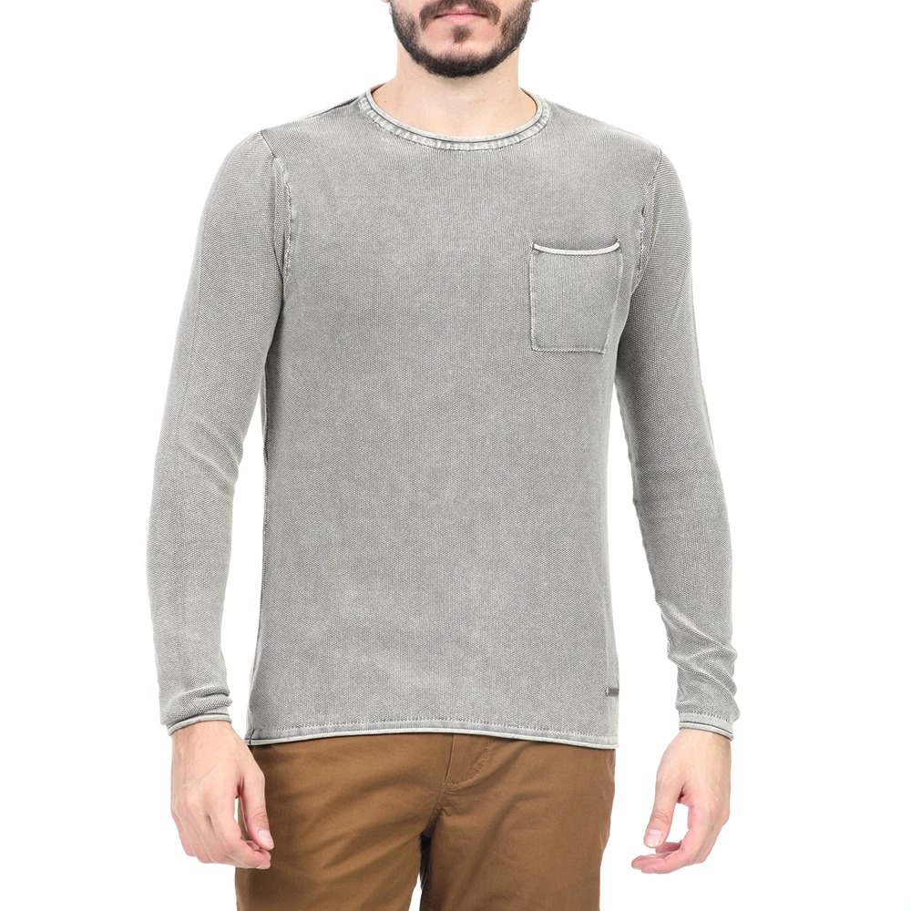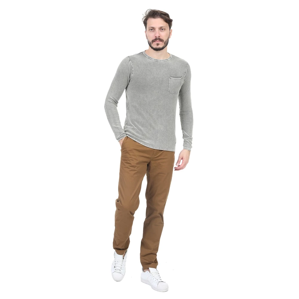 Ανδρική πλεκτή μπλούζα BATTERY σε καφέ απόχρωση. Σε ίσια γραμμή, από βαμβακερή σύνθεση. Έχει μακριά μανίκια και στρογγυλή λαιμόκοψη. Μία τσέπη στο στήθος.