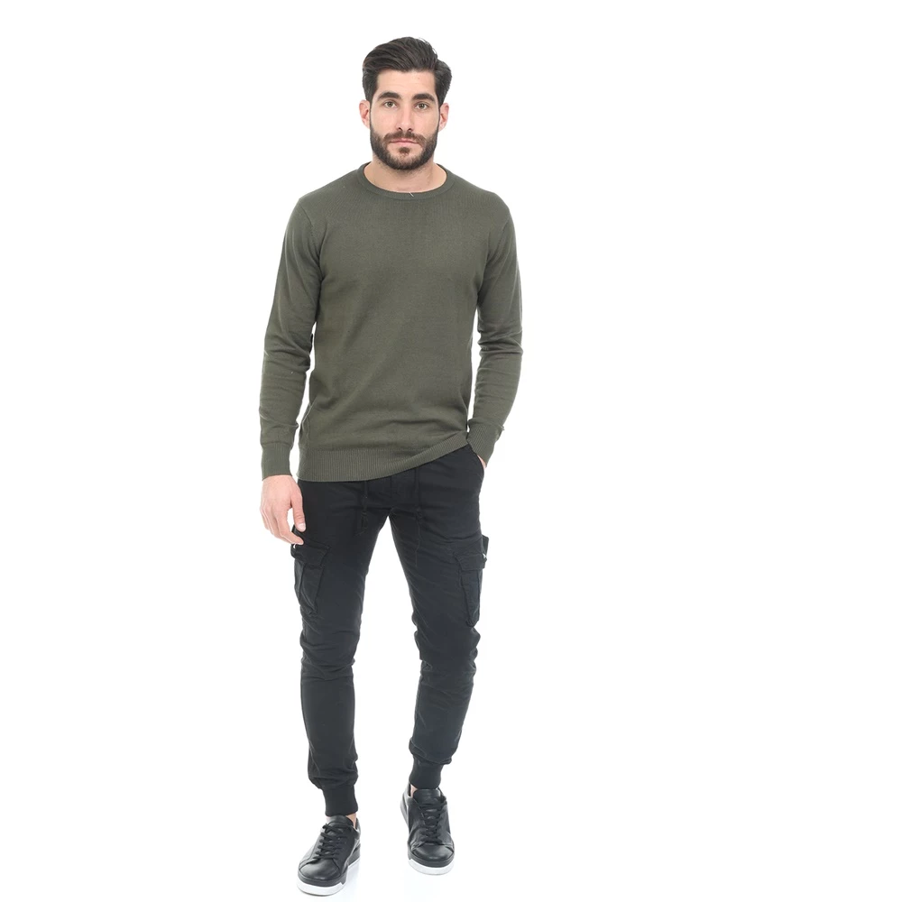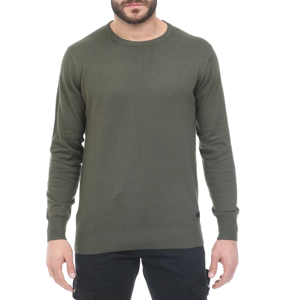 Ανδρική πλεκτή μπλούζα CATAMARAN SAILWEAR σε χακί απόχρωση. Σε ίσια γραμμή, με μακριά μανίκια και στρογγυλή λαιμόκοψη. Λάστιχο ριμπ στις μανσέτες και την βάση.