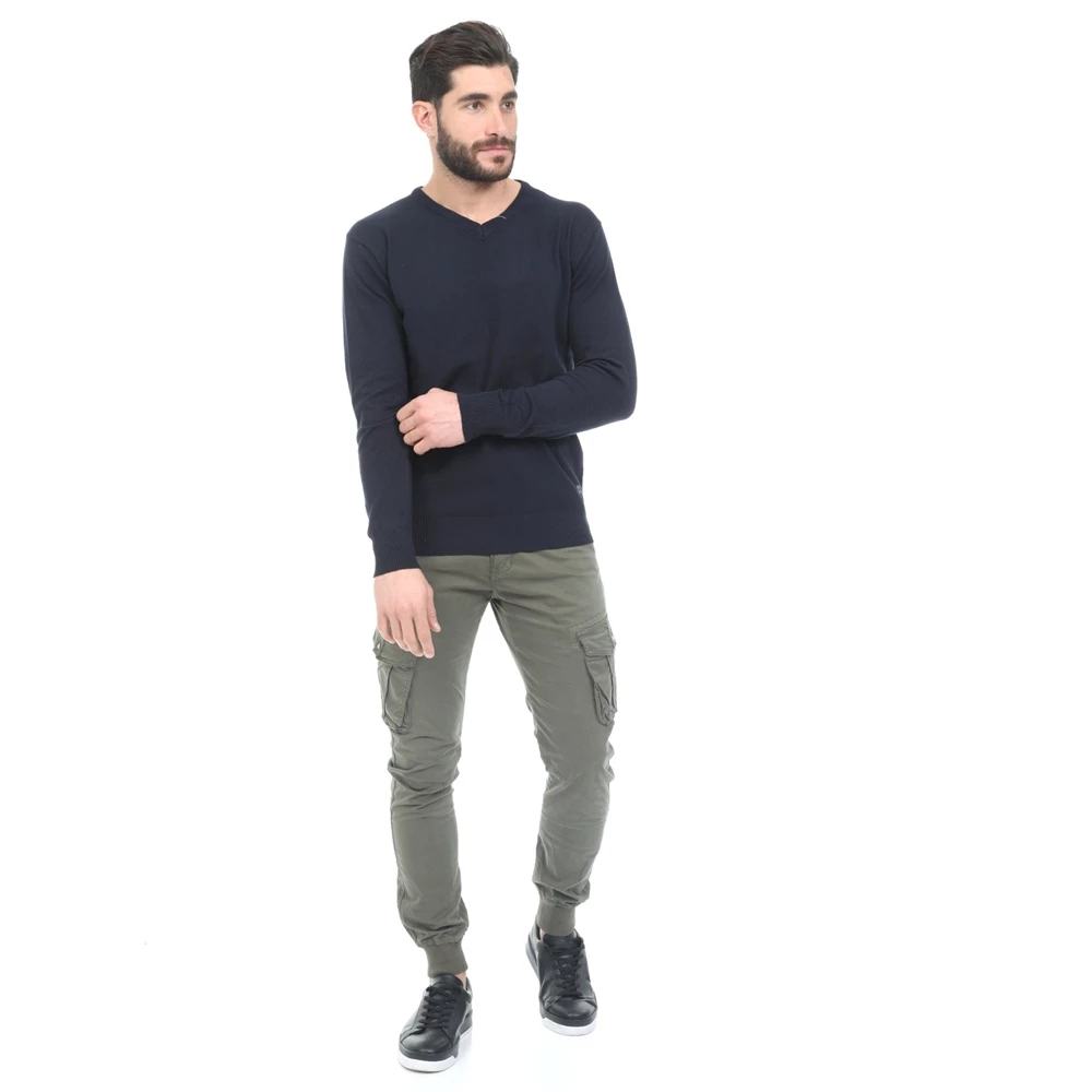 Ανδρική πλεκτή μπλούζα CATAMARAN SAILWEAR σε μπλε απόχρωση. Σε ίσια γραμμή, με μακριά μανίκια και V λαιμόκοψη. Λάστιχο ριμπ στις μανσέτες και την βάση.