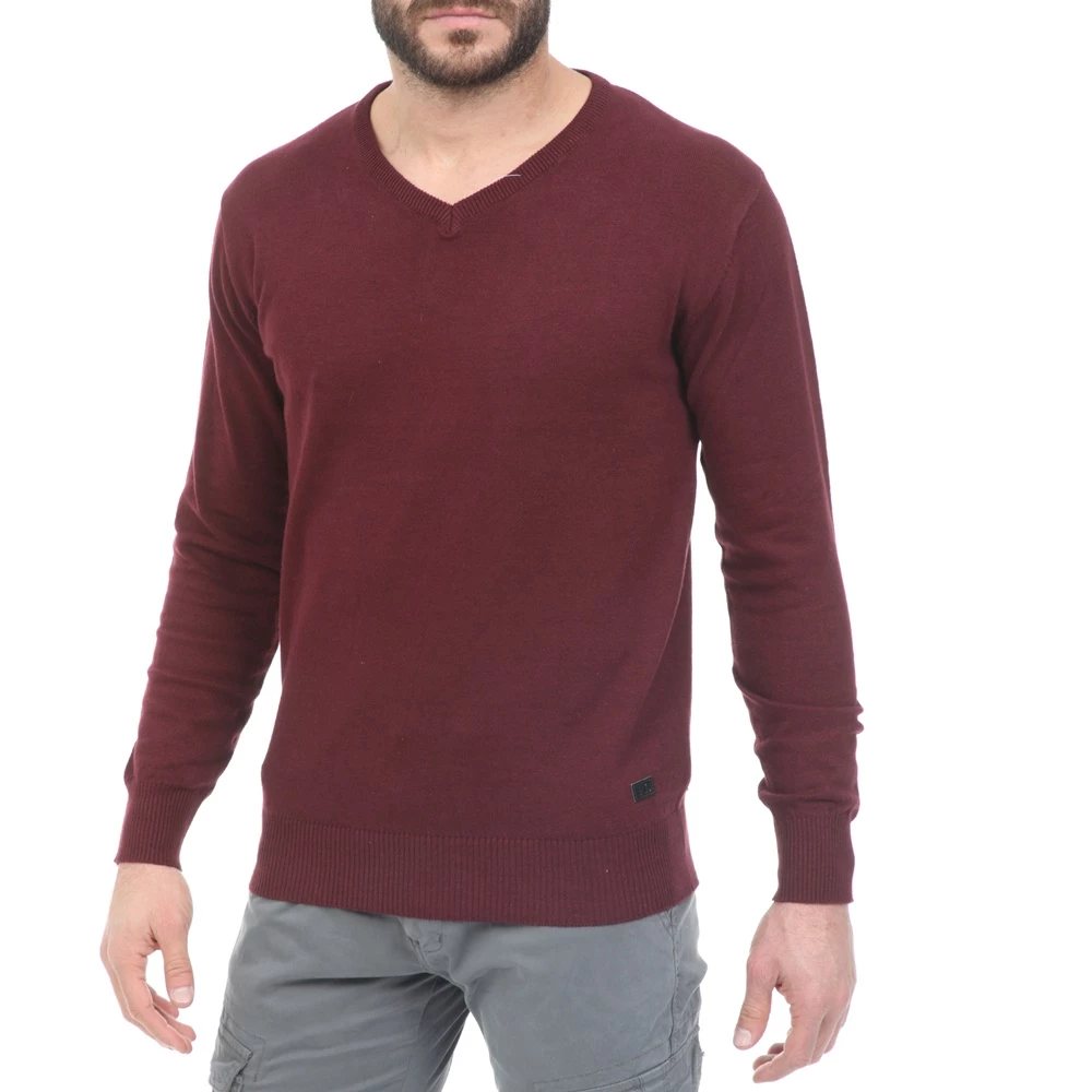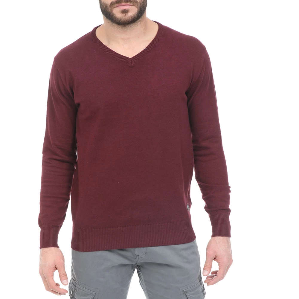 Ανδρική πλεκτή μπλούζα CATAMARAN SAILWEAR σε μπορντό απόχρωση. Σε ίσια γραμμή, με μακριά μανίκια και V λαιμόκοψη. Λάστιχο ριμπ στις μανσέτες και την βάση.