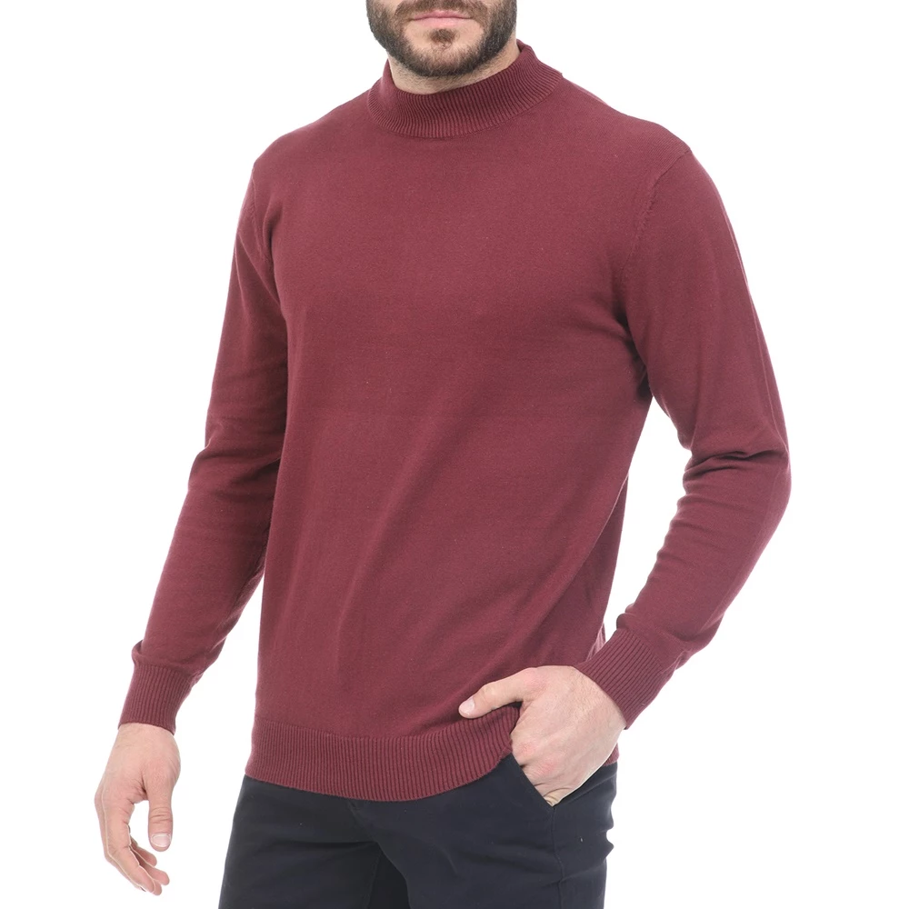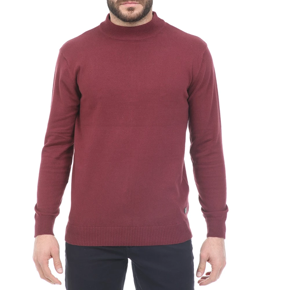 Ανδρική πλεκτή μπλούζα CATAMARAN SAILWEAR σε μπορντό απόχρωση. Σε ίσια γραμμή, με μακριά μανίκια και στρογγυλή λαιμόκοψη, με μικρό όρθιο γιακά. Λάστιχο ριμπ στις μανσέτες και την βάση.