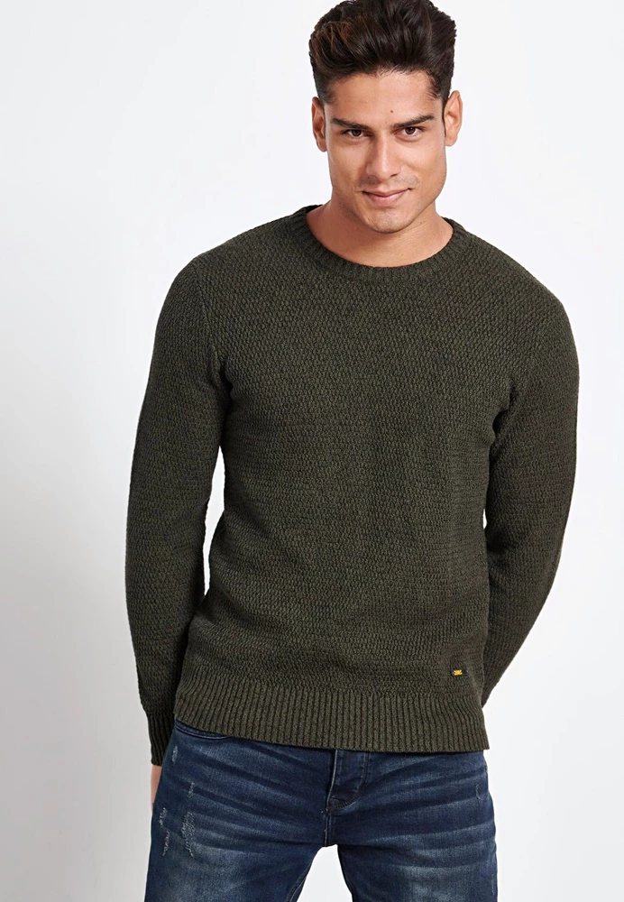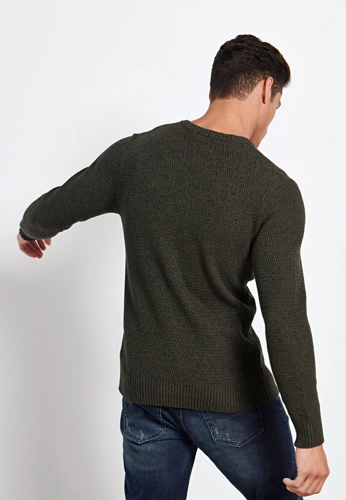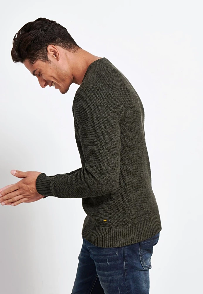 Ανδρική πλεκτή μπλούζα FUNKY BUDDHA σε λαδί απόχρωση. Από βαμβακερή μελανζέ πλέξη, με rib τελειώματα. Έχει μακριά μανίκια και στρογγυλή λαιμόκοψη.