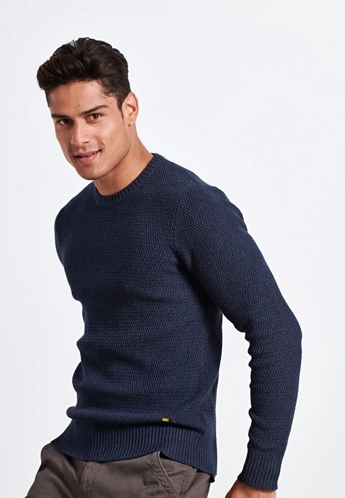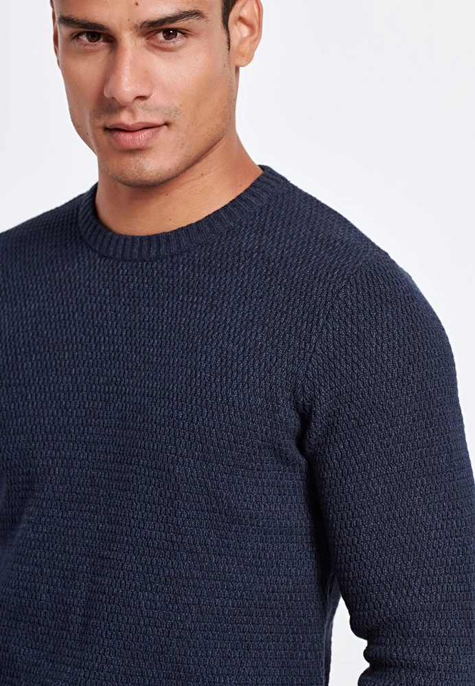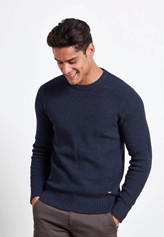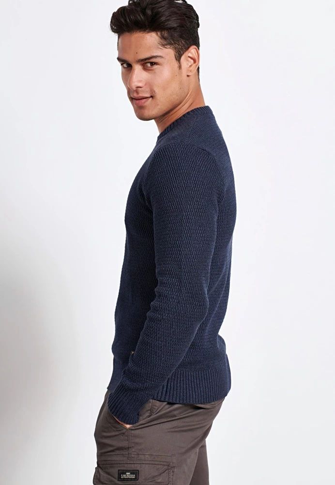Ανδρική πλεκτή μπλούζα FUNKY BUDDHA σε μπλε απόχρωση. Από βαμβακερή μελανζέ πλέξη, με rib τελειώματα. Έχει μακριά μανίκια και στρογγυλή λαιμόκοψη.