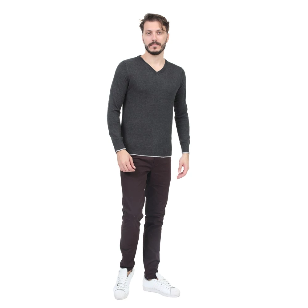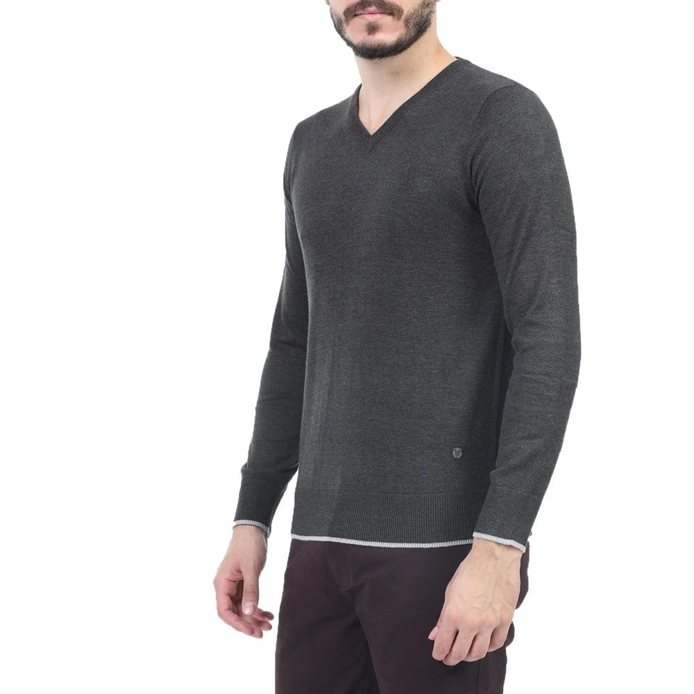 Ανδρική πλεκτή μπλούζα GREENWOOD σε ανθρακί απόχρωση. Σε ίσια γραμμή, από βαμβακερή σύνθεση. Έχει μακριά μανίκια και V λαιμόκοψη. Λάστιχο ριμπ στη βάση και τις μανσέτες.