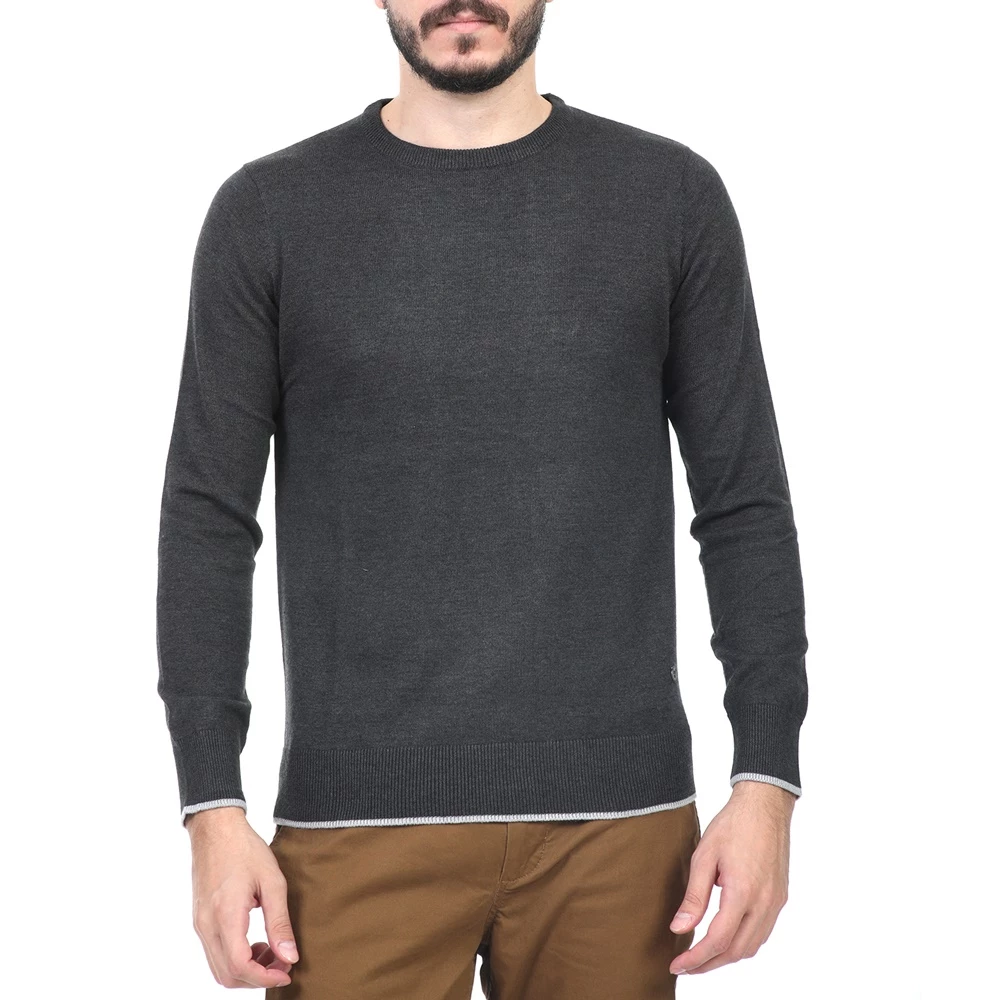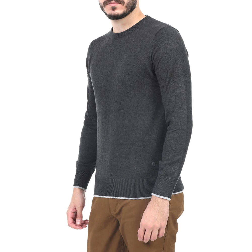 Ανδρική πλεκτή μπλούζα GREENWOOD σε ανθρακί απόχρωση. Σε ίσια γραμμή, από βαμβακερή σύνθεση. Έχει μακριά μανίκια και στρογγυλή λαιμόκοψη. Λάστιχο ριμπ στη βάση και τις μανσέτες.