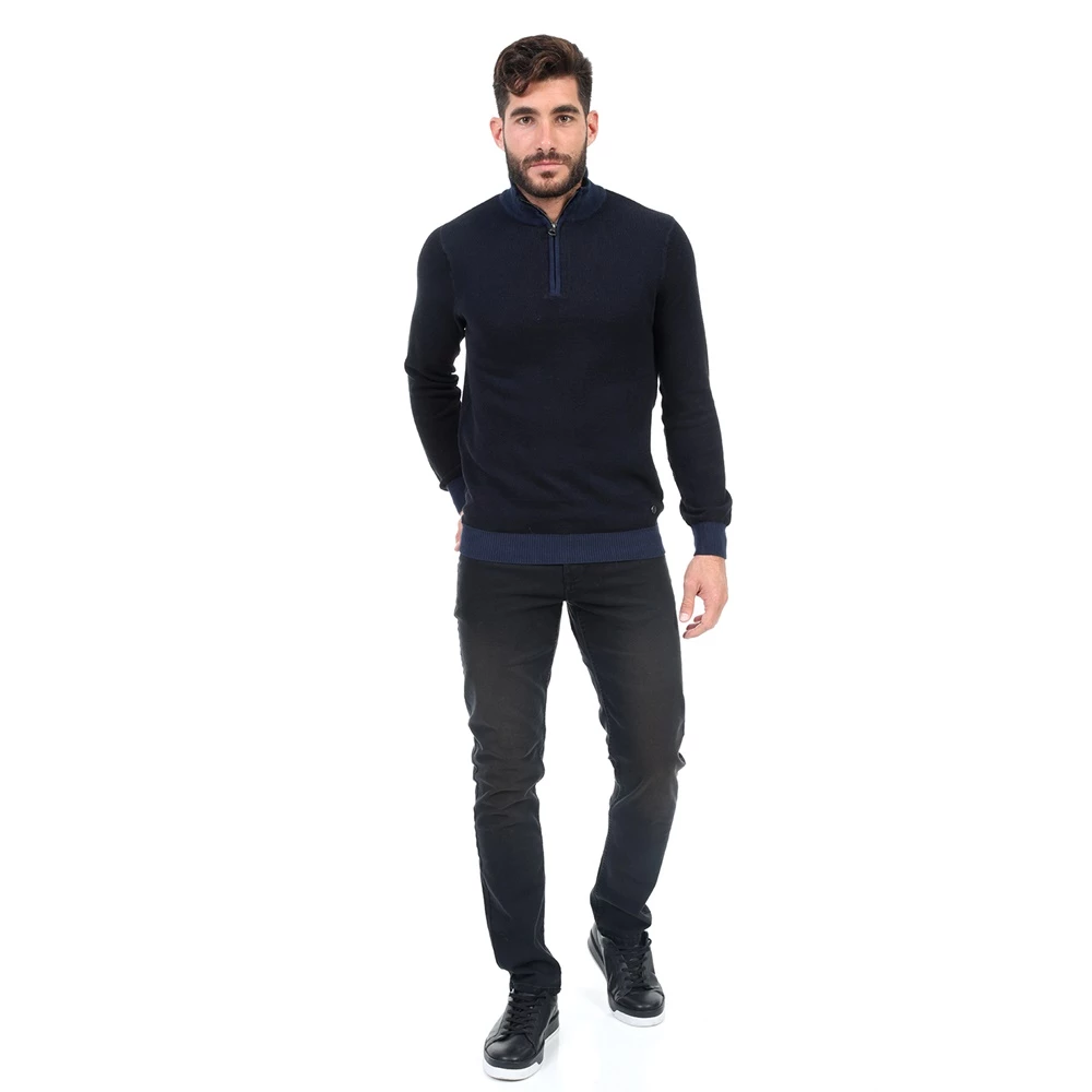 Ανδρική πλεκτή μπλούζα OCEAN SHARK σε μπλε απόχρωση. Σε ίσια γραμμή, από βαμβακερή σύνθεση, με ανάγλυφη πλέξη. Έχει μακριά μανίκια και στρογγυλή λαιμόκοψη. Λάστιχο ριμπ στη βάση και τις μανσέτες.