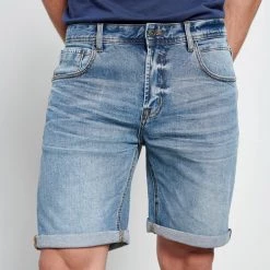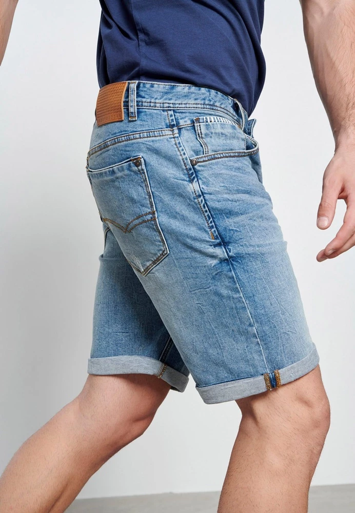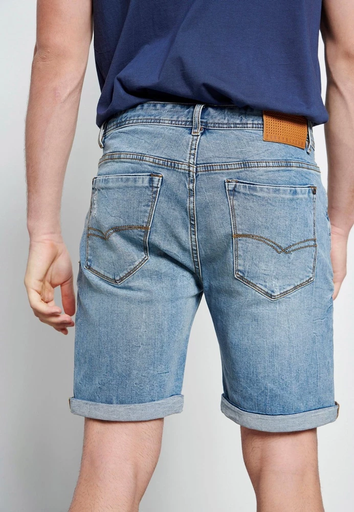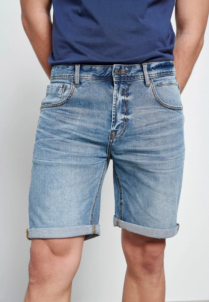 Ανδρική τζιν βερμούδα FUNKY BUDDHA σε ανοιχτή μπλε απόχρωση. Από σταθερό βαμβακερό ύφασμα, με κανονική εφαρμογή. Διαθέτει τσέπες μπροστά, πίσω και στα πλαϊνά. Κλείνει με κουμπί και φερμουάρ.