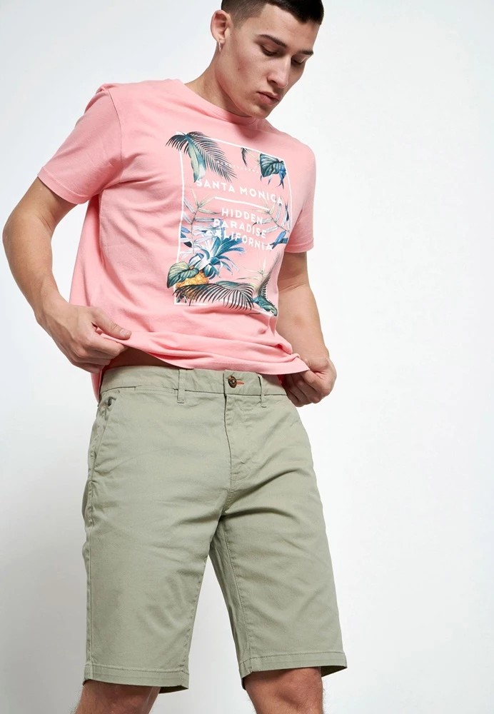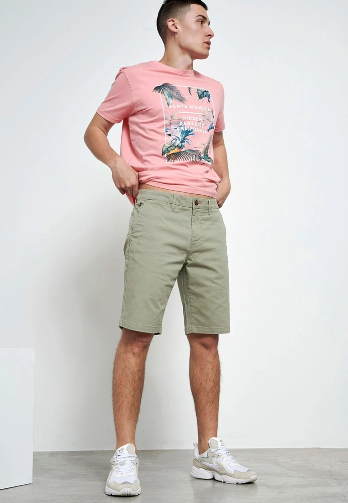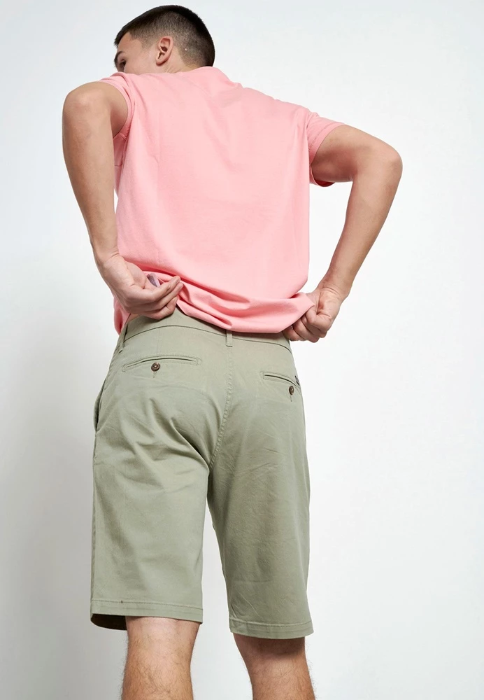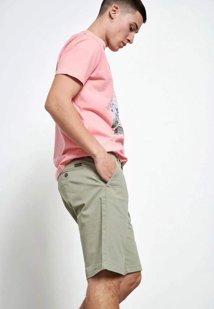 Ανδρική βερμούδα FUNKY BUDDHA σε μπεζ απόχρωση. Σε στιλ chino, με κανονική εφαρμογή. Διαθέτει δύο μπροστινές και δύο πίσω τσέπες. Κλείνει με κουμπί και φερμουάρ μπροστά.