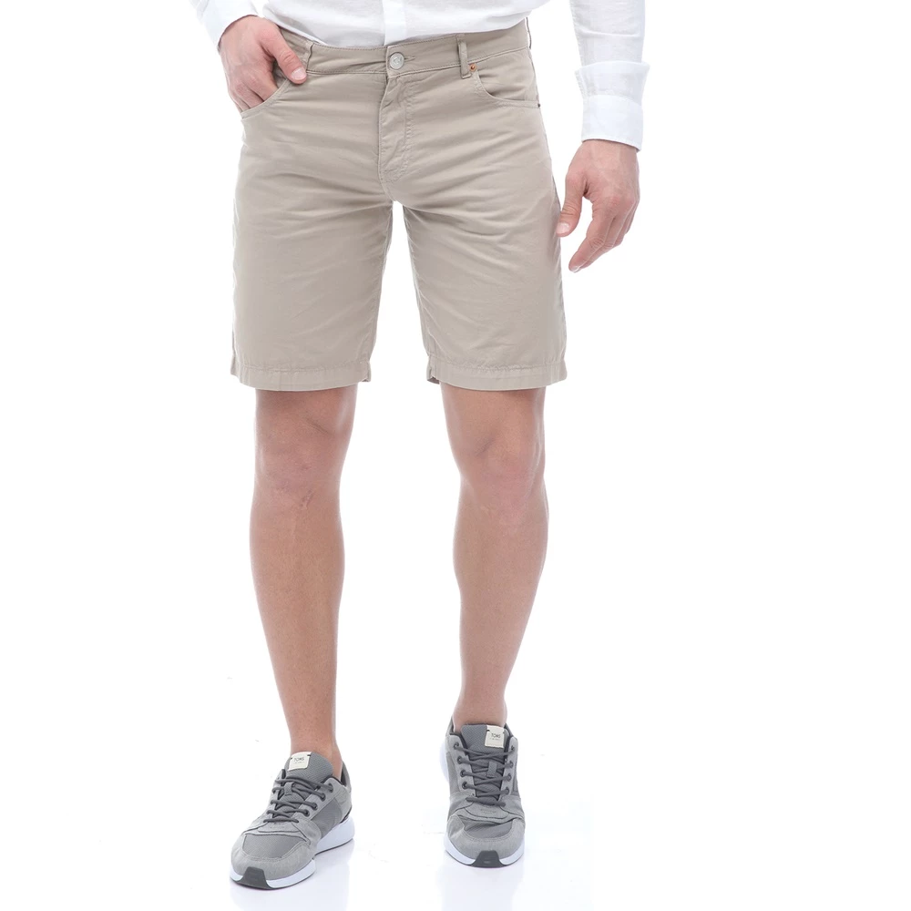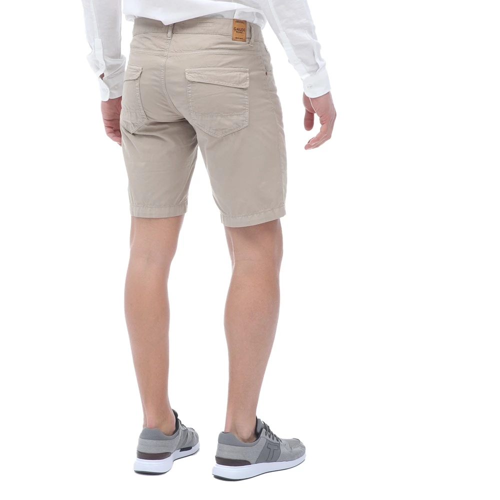 Ανδρική βερμούδα GAUDI σε καφέ απόχρωση. Σε ίσια γραμμή, από βαμβακερή σύνθεση. Διαθέτει δύο τσέπες στα πλάγια, δύο τσέπες πίσω και κλείνει με κουμπί και φερμουάρ μπροστά.