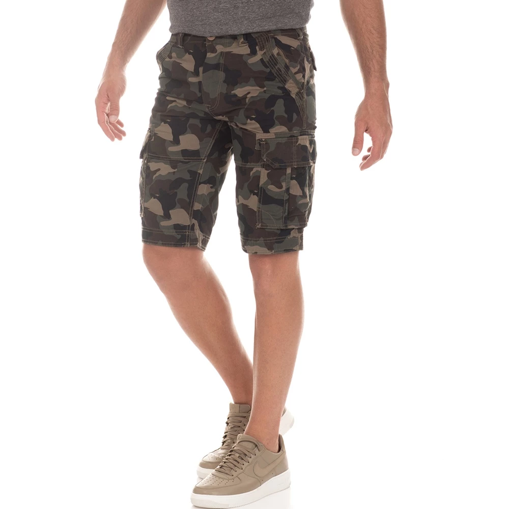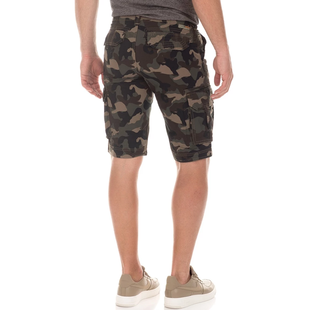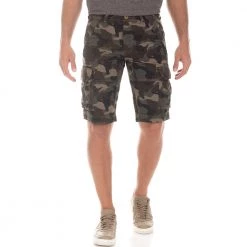 Βαμβακερή cargo βερμούδα με μοτίβο παραλλαγής σε χακί απόχρωση και μεγάλες τσέπες στο πλάι.
