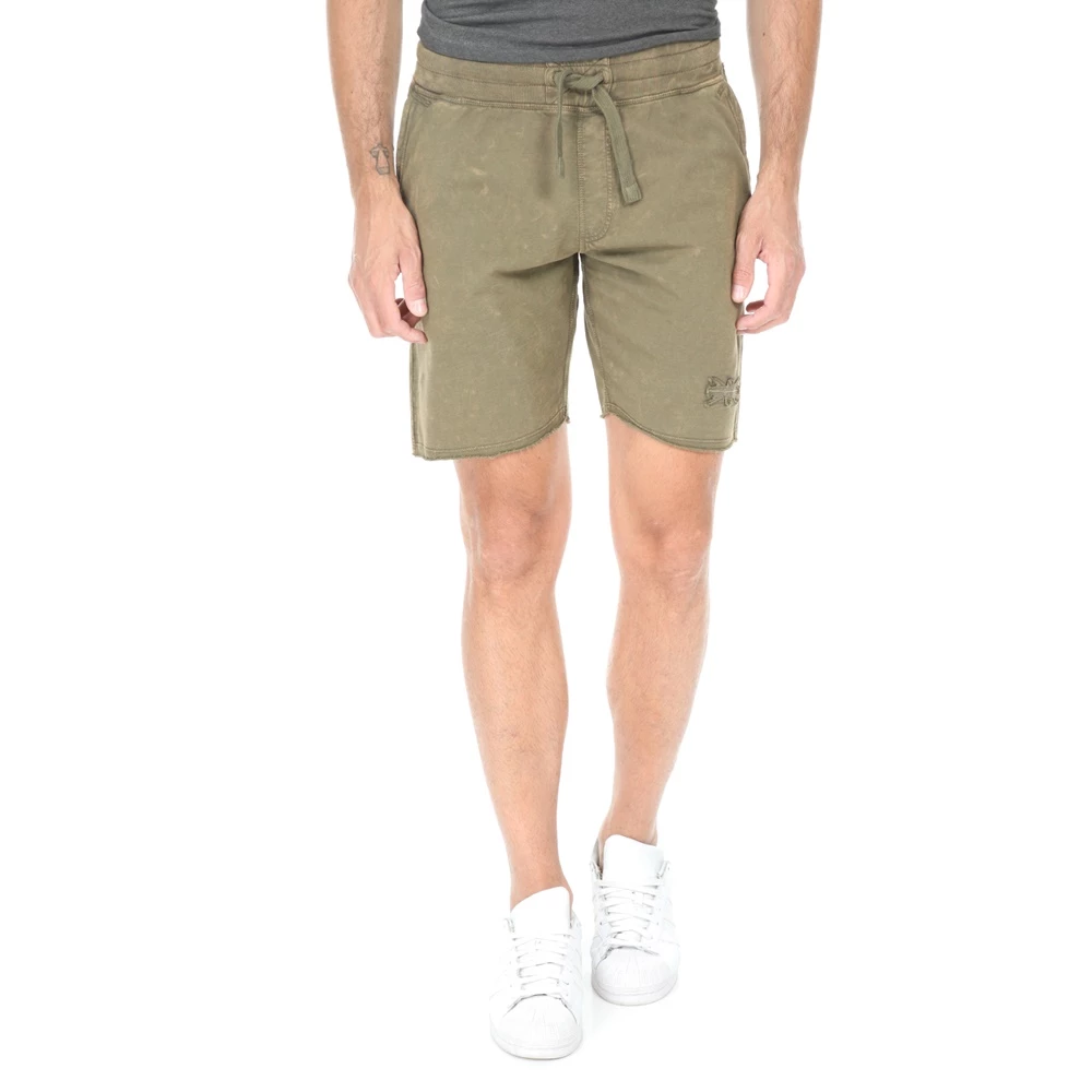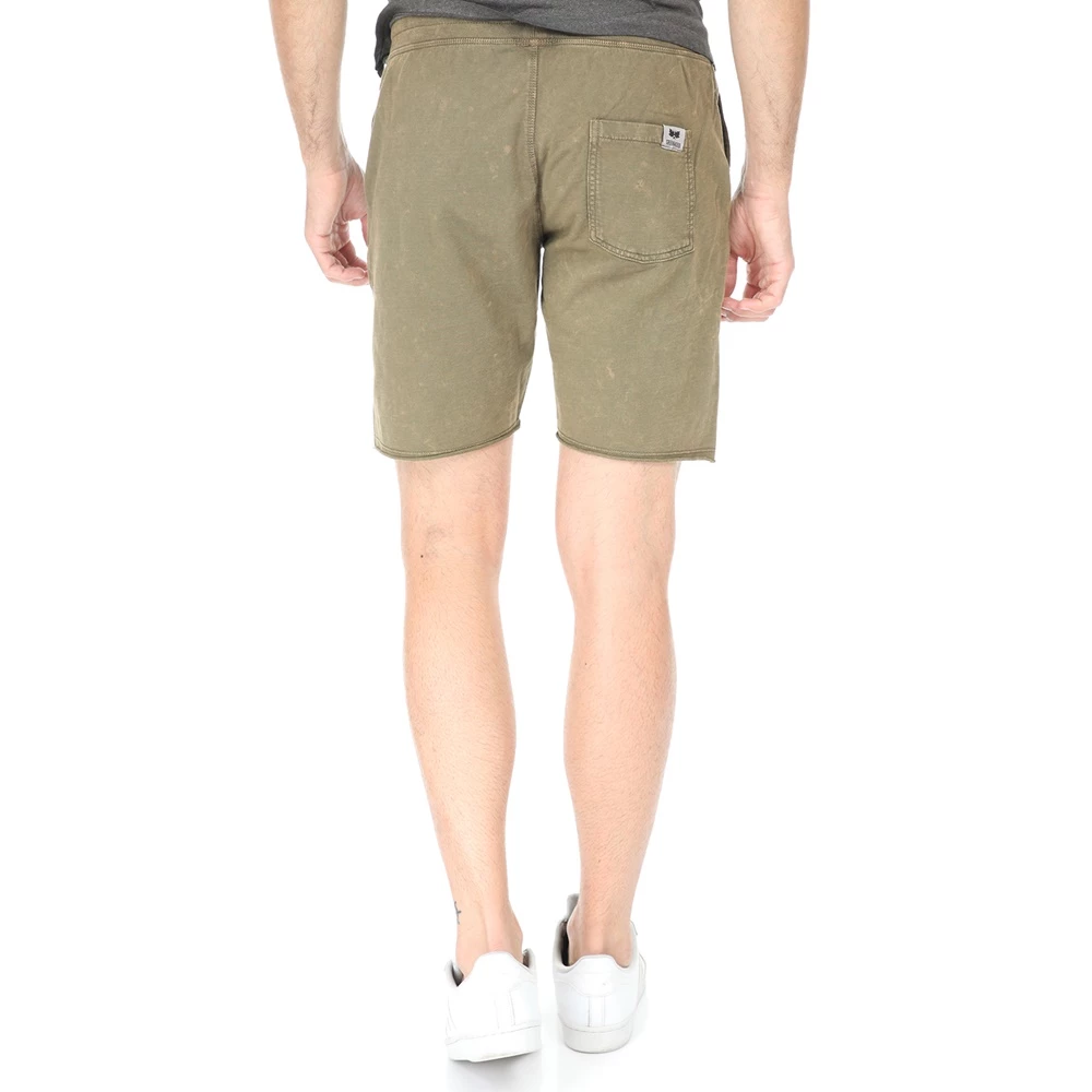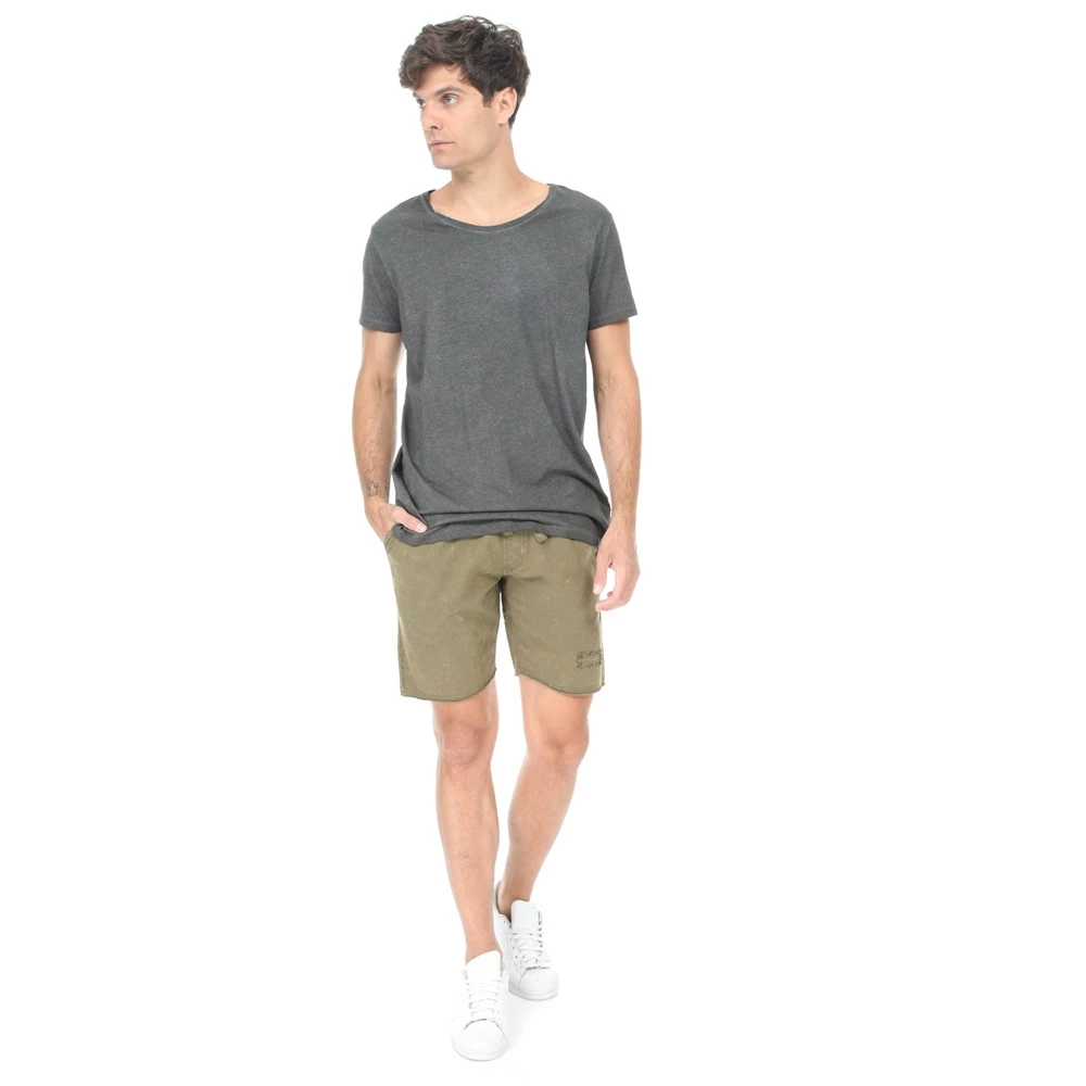 Ανδρική βερμούδα GREENWOOD σε χακί απόχρωση. Σε ίσια γραμμή από βαμβακερή σύνθεση. Διαθέτει δύο τσέπες στα πλάγια και μία τσέπη πίσω. Λάστιχο ριμπ με κορδονι στη μέση και κεντημένη λεπτομέρεια στη βάση.