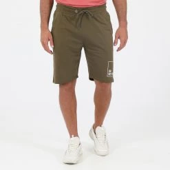 Ανδρική βερμούδα GREENWOOD σε χακί απόχρωση, με τύπωμα στη βάση. Από βαμβακερή σύνθεση, σε ίσια γραμμή. Διαθέτει λάστιχο με κορδόνι στη μέση, δύο τσέπες στα πλάγια και μία τσέπη πίσω.